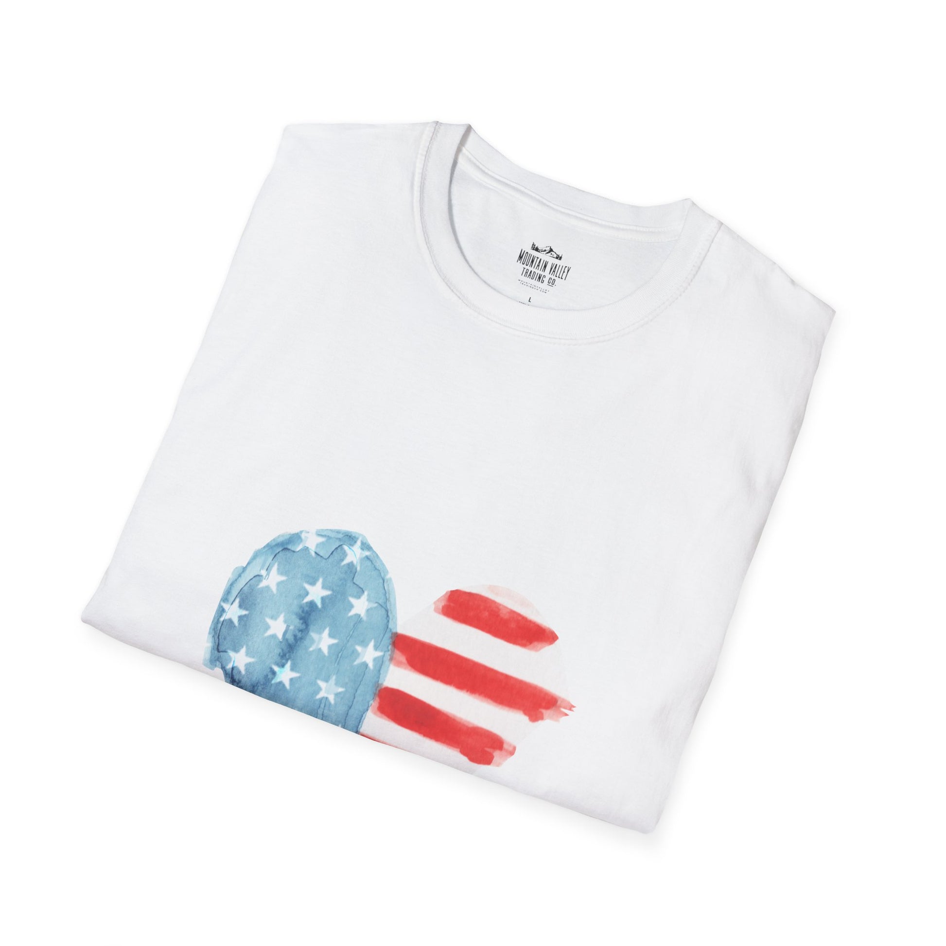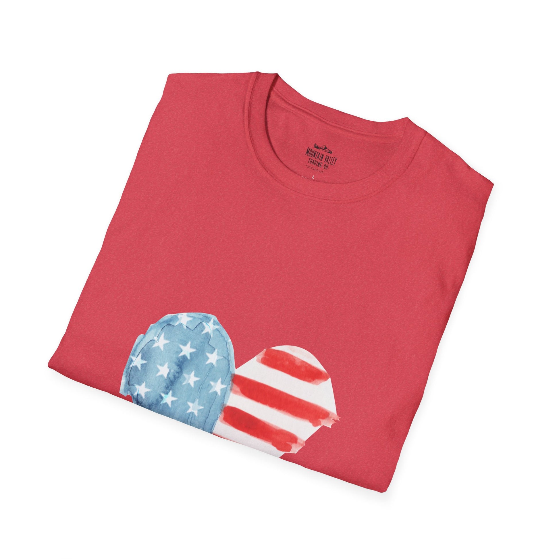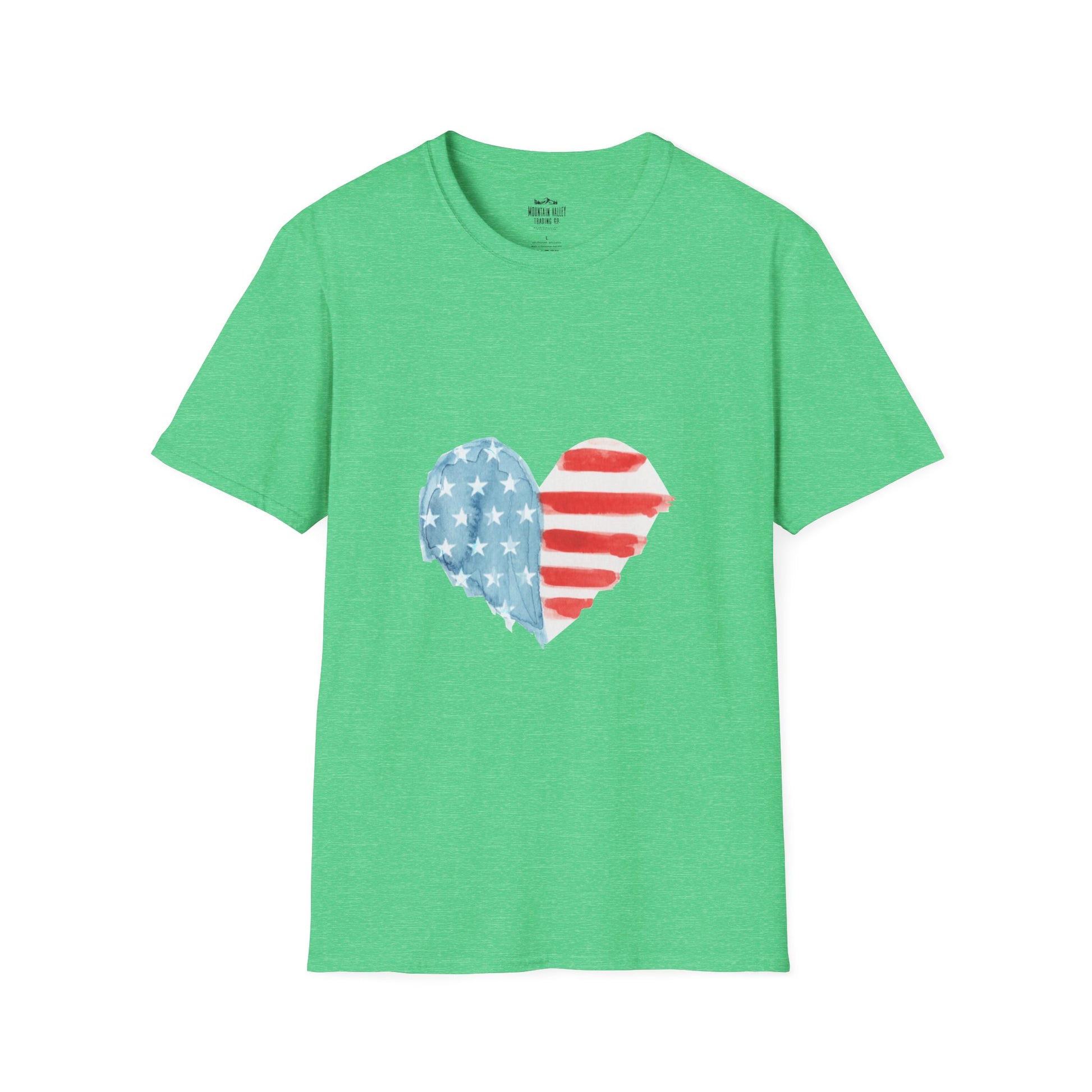 Wear your love for the USA right on your chest—literally! This American Flag Heart T-Shirt is the perfect way to show off your star-spangled spirit with a touch of heart. Featuring the iconic red, white, and blue in a bold heart-shaped design, this shirt screams patriotism with style!