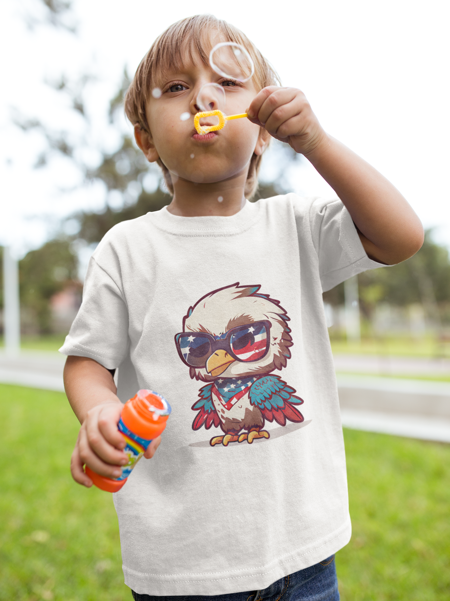 This eagle isn’t just free—he’s fierce! Rocking shades and attitude, he’s soaring into summer with patriotic pride. Great for kids who love to stand out, stay cool, and show their stars-and-stripes swagger