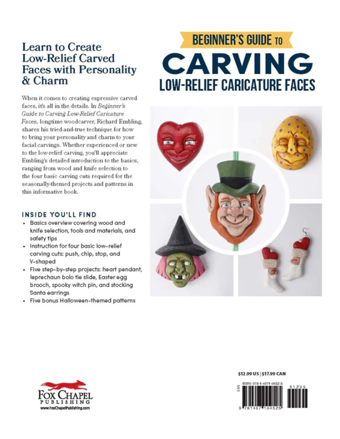 Master relief cuts and refine your details with precision alongside expert carver Richard Embling. Carve low-relief caricature faces using industry techniques on skill-building projects designed especially for beginners. Inside you'll find detailed instructions for a variety of cuts from push cuts to v-shaped cuts alongside a tool guide for drills, knives and more alongside sharpening tips using a strop or diamond stones. Once you've mastered your tools, it's time to make your cuts! From push to v-shaped cuts and everything in between you'll rough out your blank and carve detailed low-relief caricature faces like a pro.