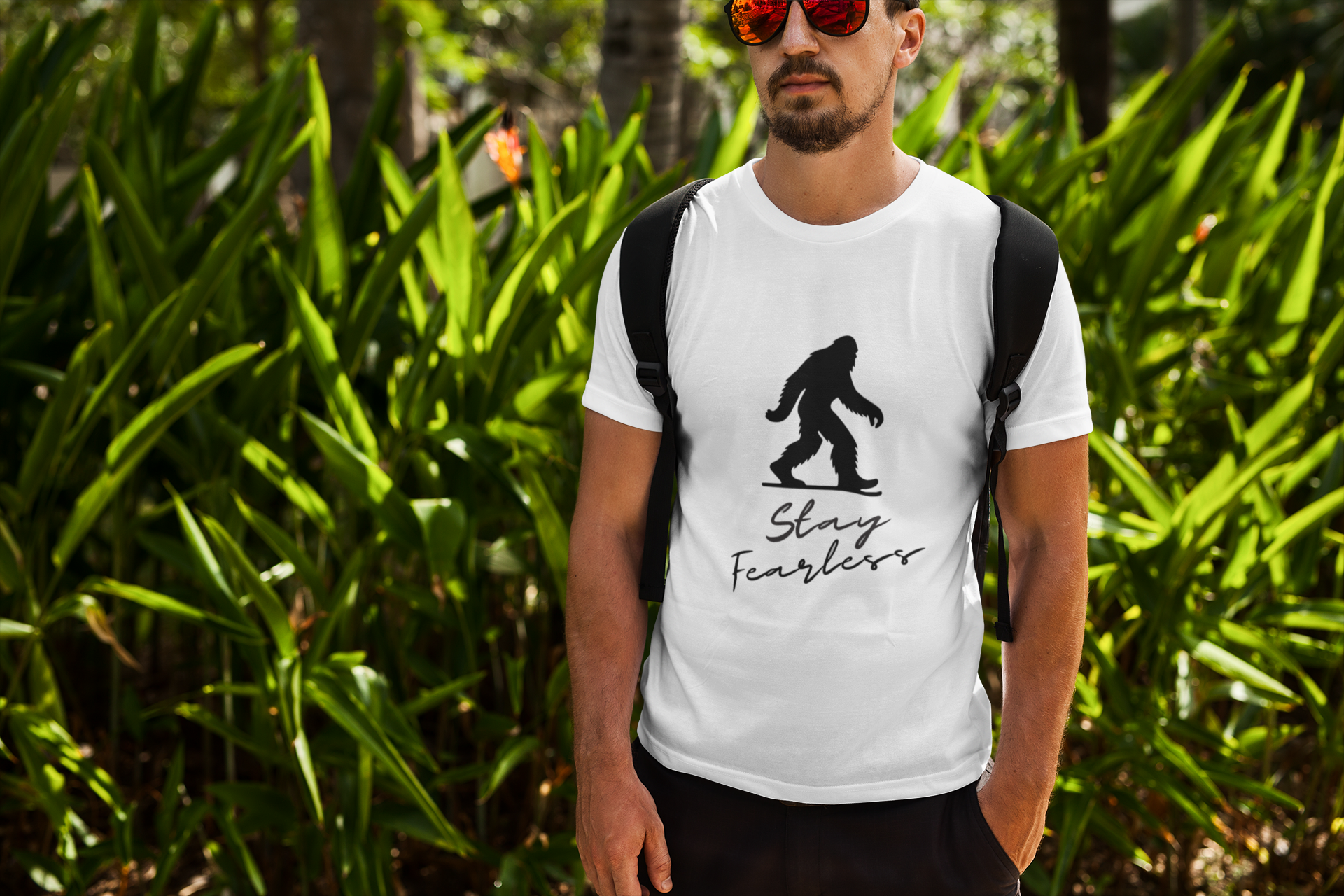 Stay fearless, because if Bigfoot can wander the woods for centuries without a care, so can you! This t-shirt is for the bold, the brave, and the ones who don’t flinch at a rustle in the bushes. Featuring the legendary Sasquatch strutting with confidence, it’s a reminder that sometimes the scariest thing out there is... well, probably your imagination. Perfect for adventurers, skeptics, and anyone who knows the real secret to staying fearless: just be bigger than your fears—like Bigfoot!