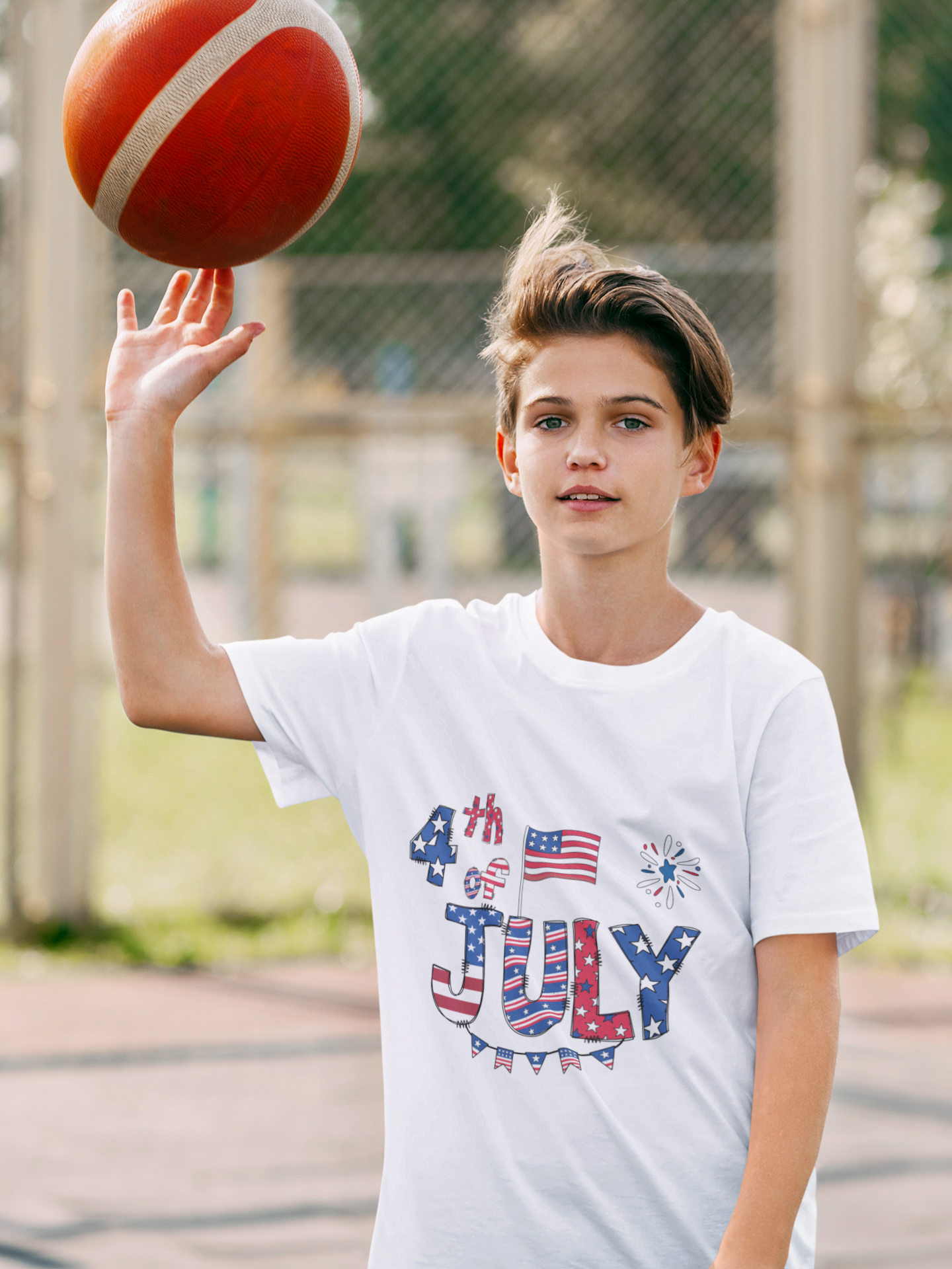 Boom! Bam! Yay! Celebrate the 4th in star-spangled style with a tee that’s ready for sparklers, watermelon, and dancing on the lawn. Because freedom looks really good in red, white, and blue.