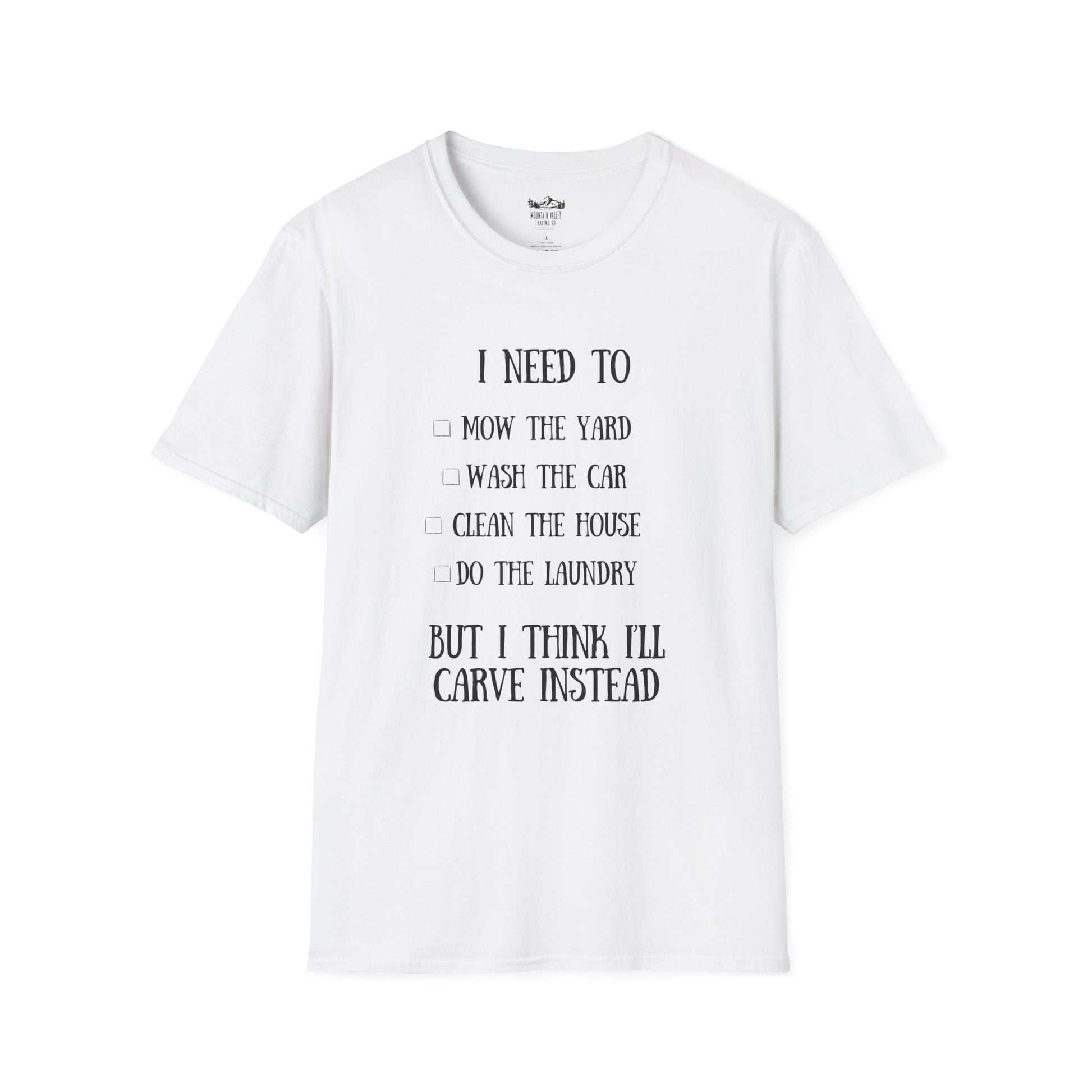 This shirt says it all: you should be tackling that to-do list, but here you are, covered in wood shavings and zero regrets. Deadlines? Eh. Chores? They'll wait. There's a block of wood with your creative genius written all over it.