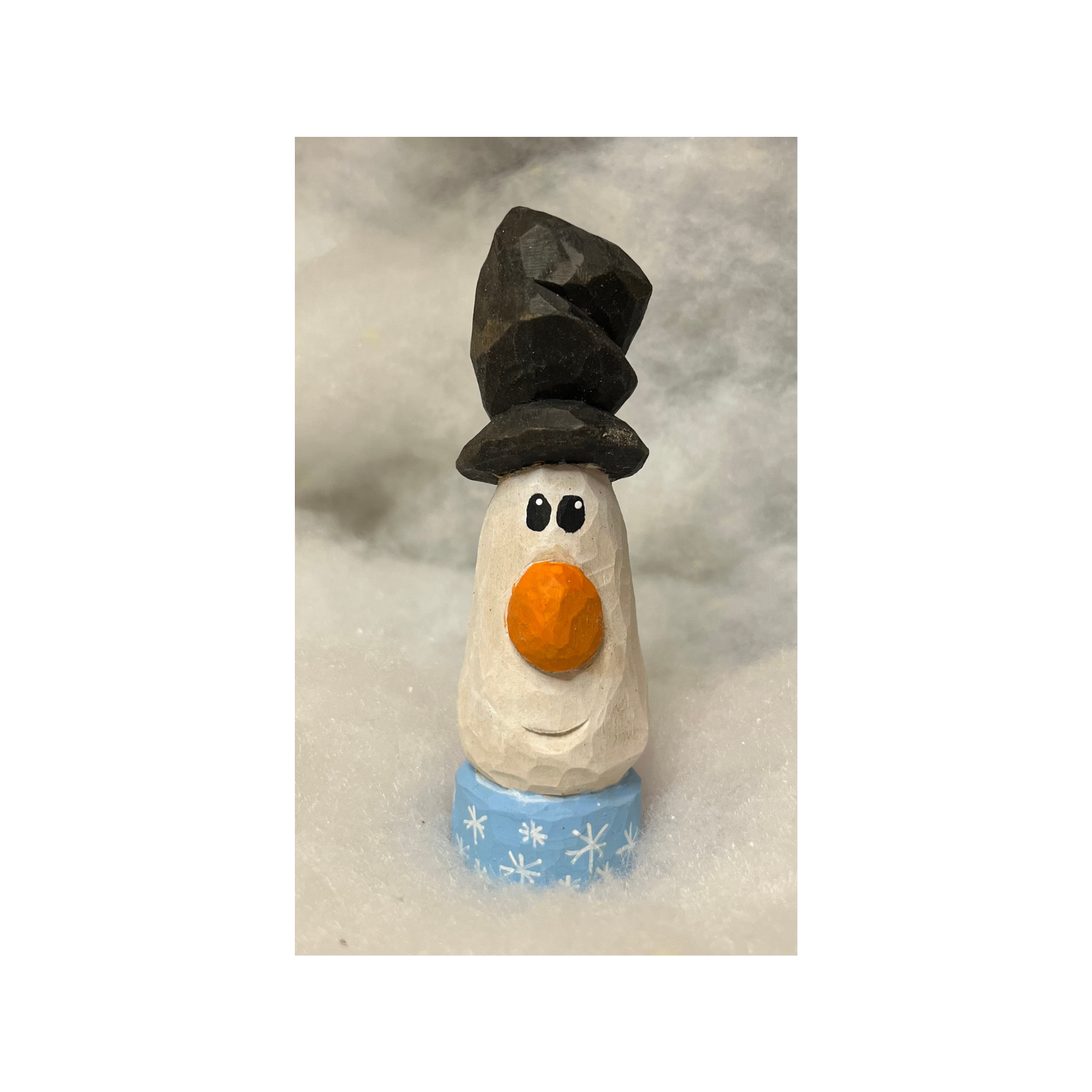 Say hello to your new frosty friend! This whimsical woodcarved snowman is full of personality, with a crooked little smile, a dapper hat perched just so, and a scarf that looks ready to flutter off in a snowflake breeze. Perched happily on your tabletop, he brings a sprinkle of winter wonder and just the right dash of magic to your holiday decor. Whether he’s guarding gingerbread cookies or simply chilling with the centerpiece, he’s sure to make spirits bright!