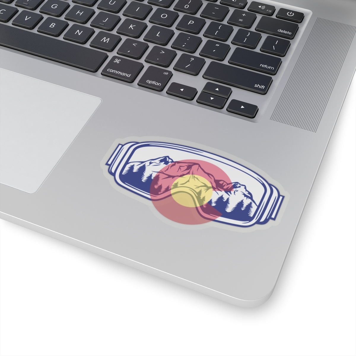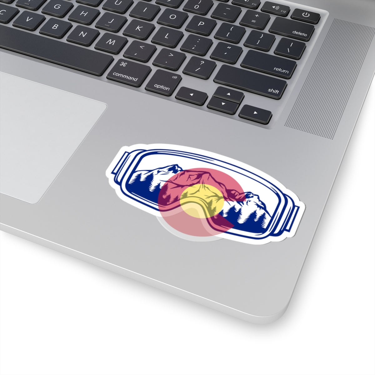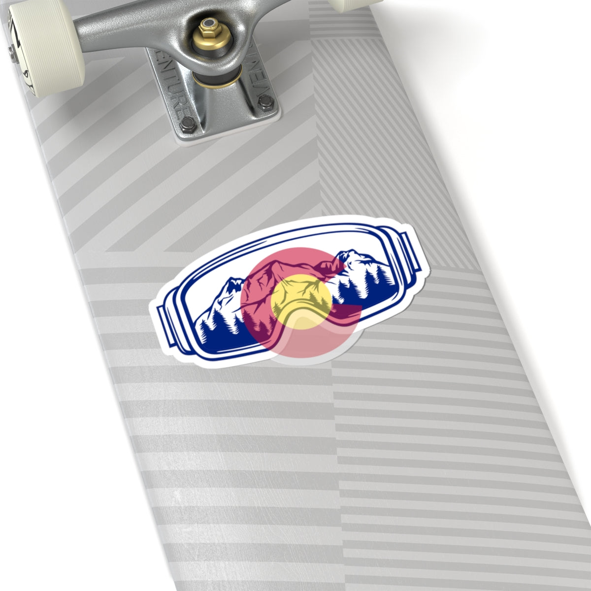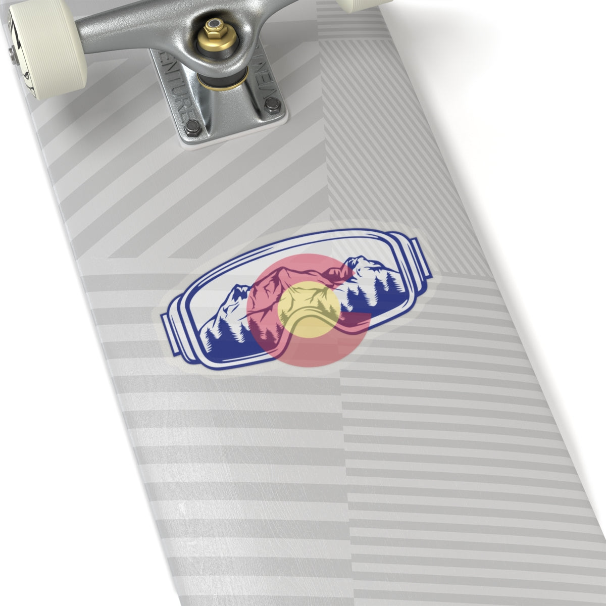 See the slopes through the eyes of adventure! This sticker blends the thrill of skiing with Colorado pride—because nothing beats fresh powder, bluebird skies, and the Rockies reflected in your goggles.