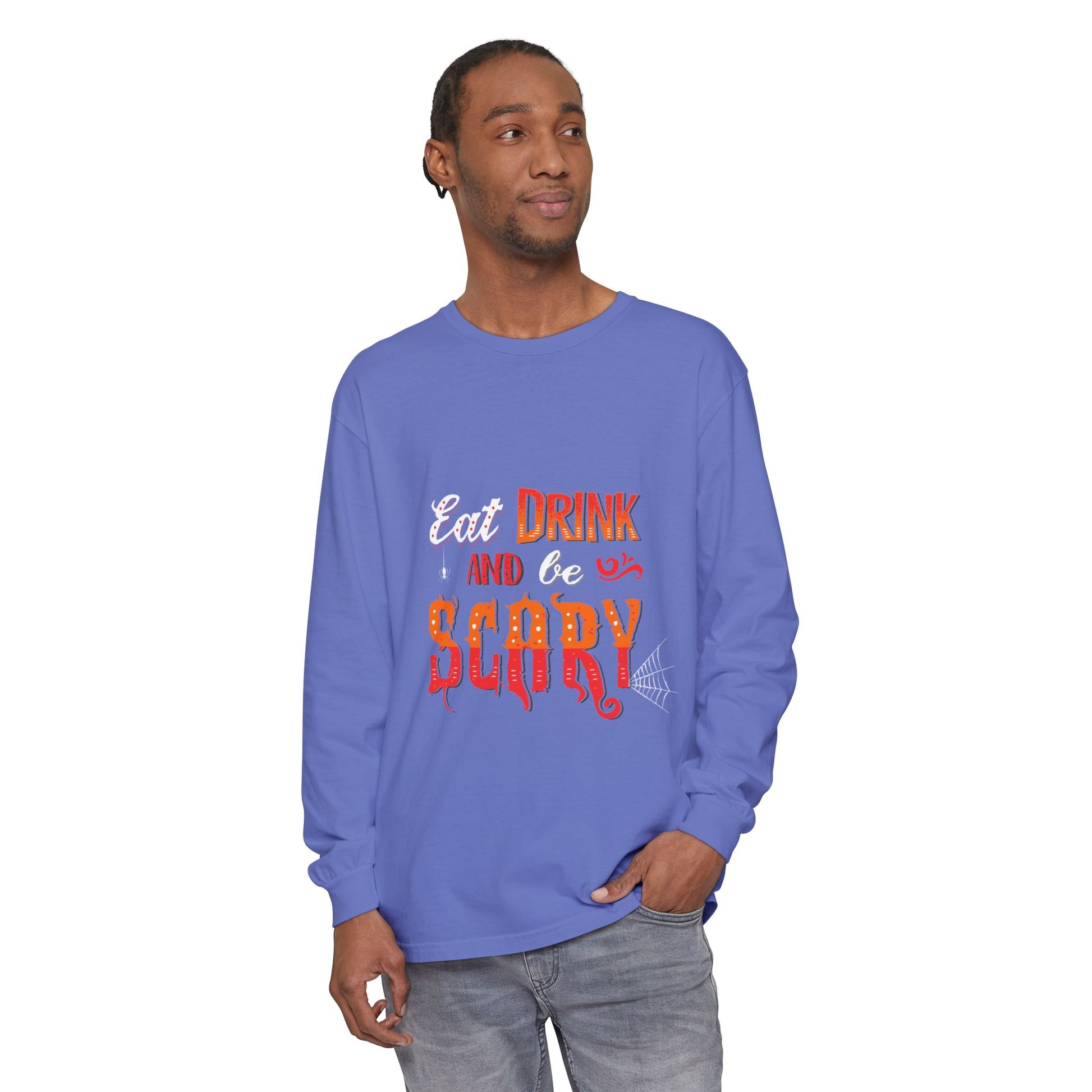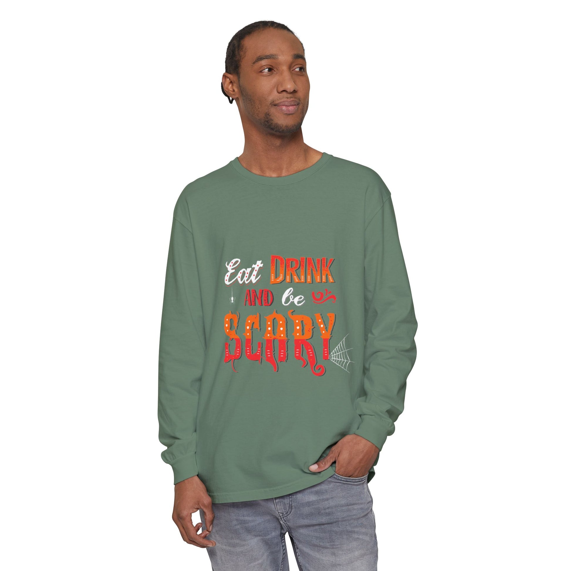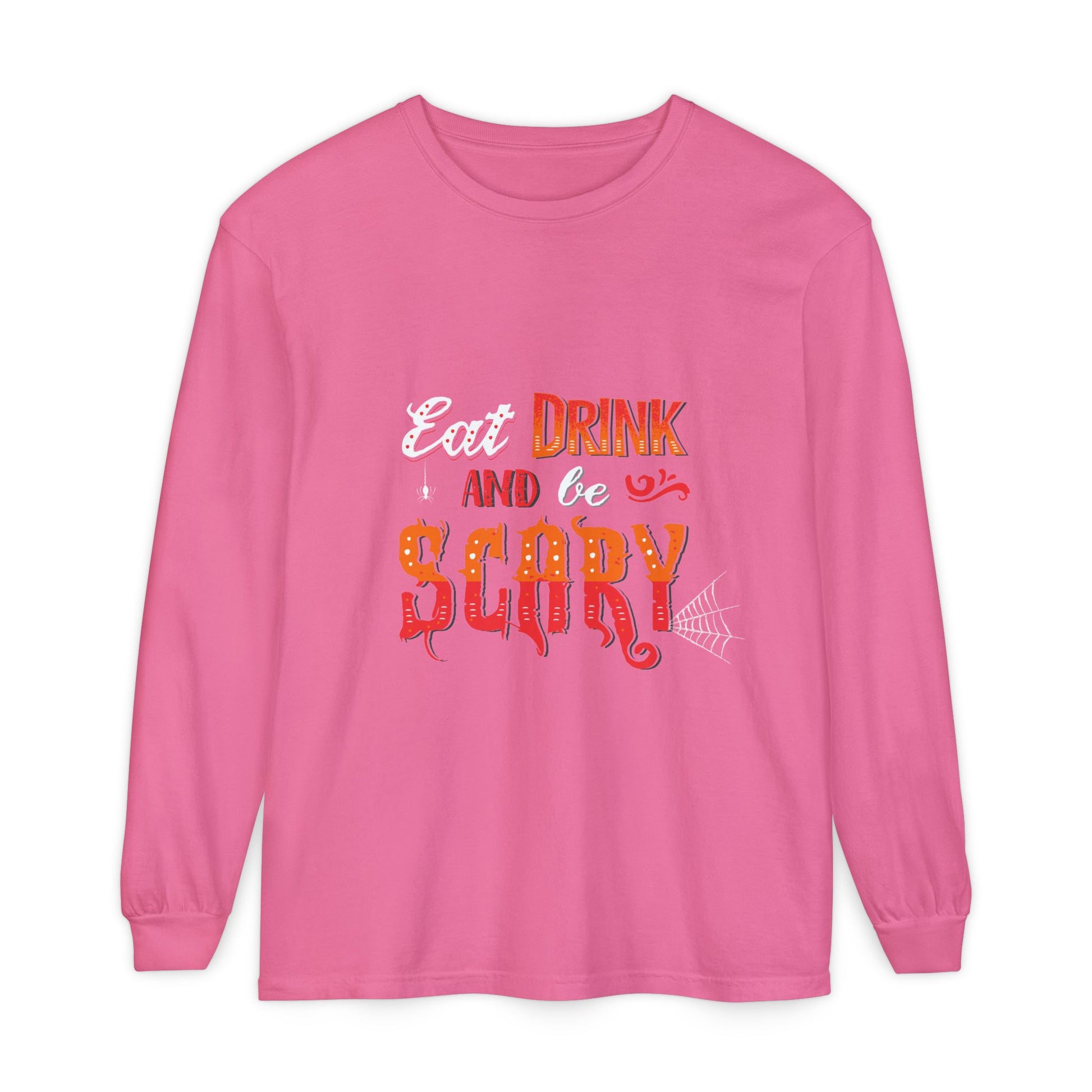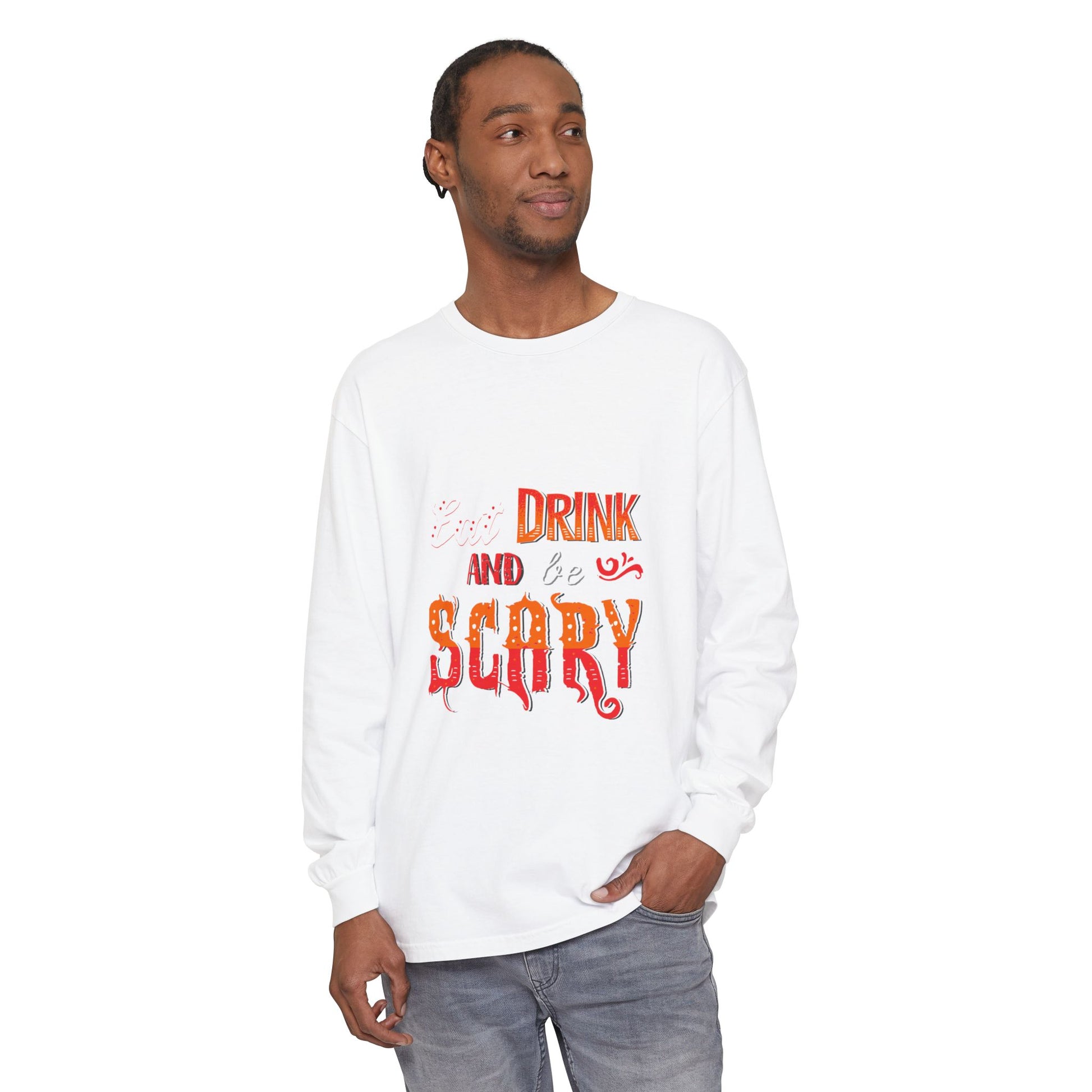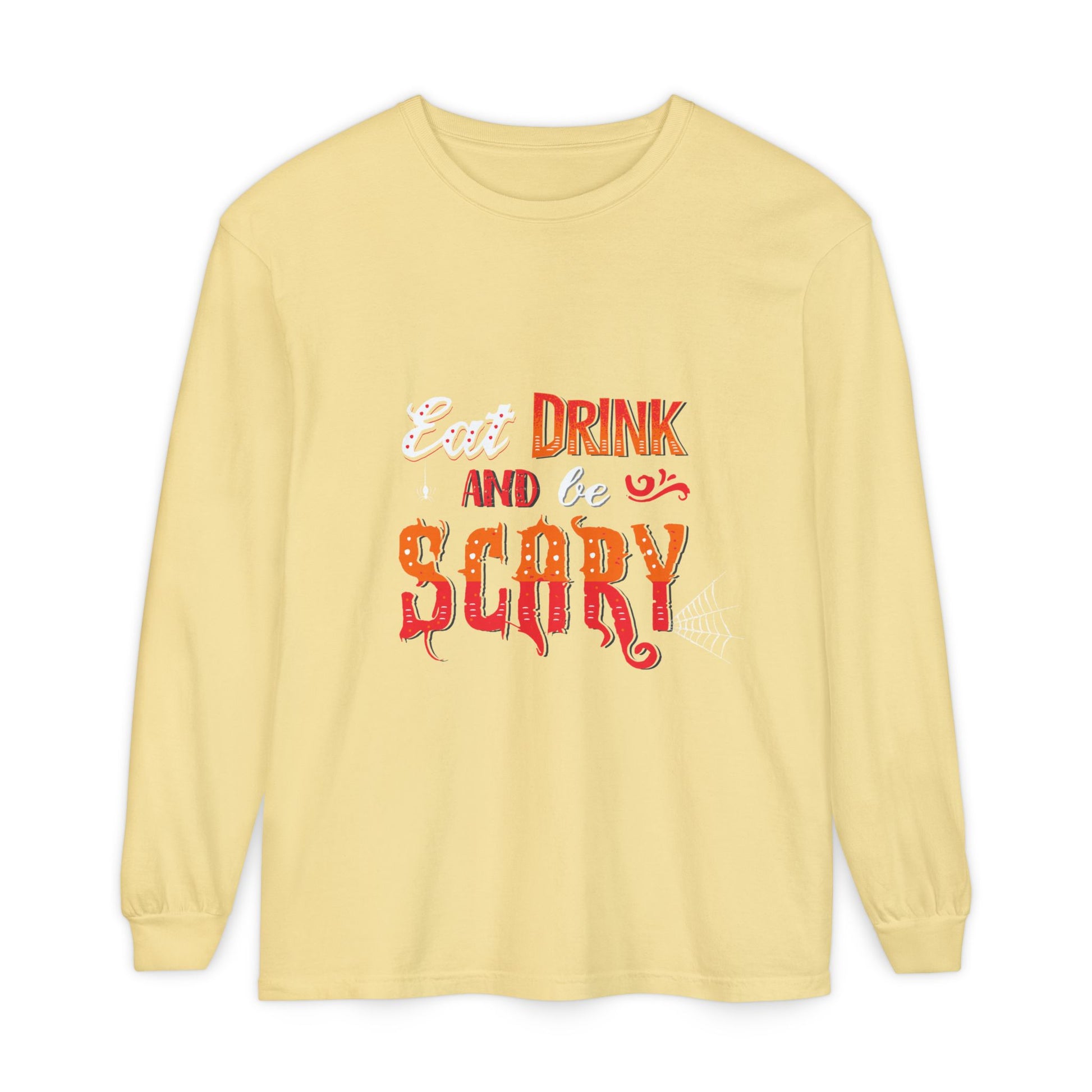 Add a little fright to your night! 👻 Our Eat, Drink, and Be Scary sweatshirt is the ultimate party piece for spooky season. Whether you’re sipping cider by the bonfire, mixing potions in the kitchen, or haunting the neighborhood on Halloween night, this cozy top keeps you festive and frightfully fun. With its bold design and comfy fit, it’s perfect for trick-or-treating, costume parties, or just chilling with your favorite fall drink.