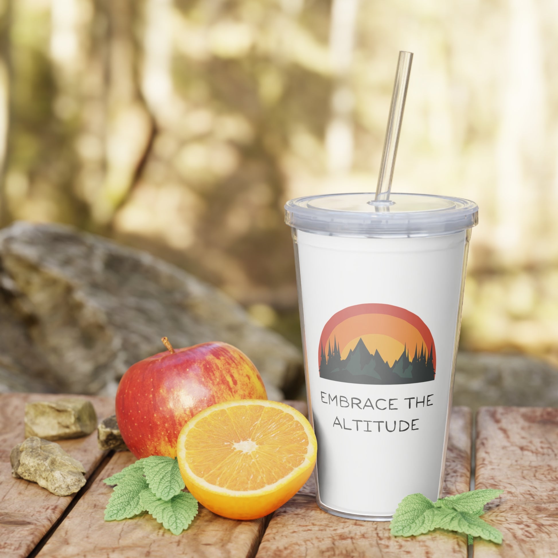 | High altitude, higher standards. This sleek mountain-themed tumbler is built for those who thrive above sea level—whether you're hiking a trail, planning your next escape, or just enjoying a cool drink with a view. With a subtle yet striking design and included straw, it's perfect for water, iced coffee, or a little summit-inspired motivation. Embrace the climb, one sip at a time. |