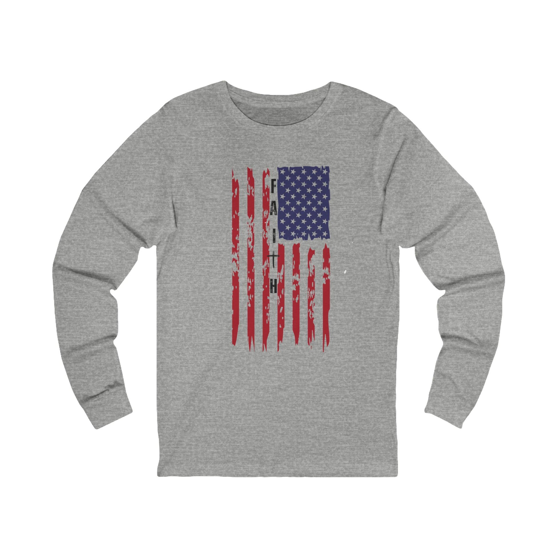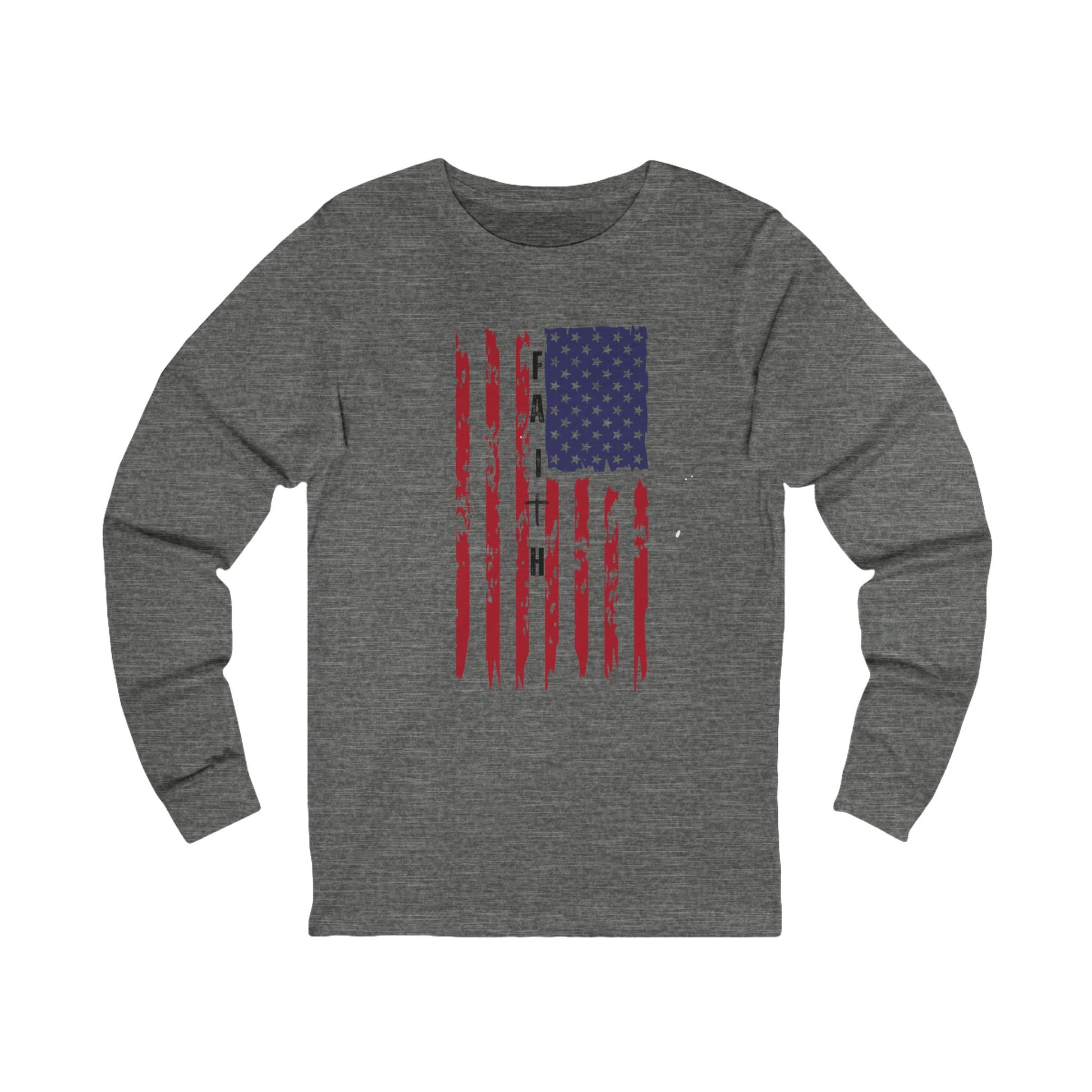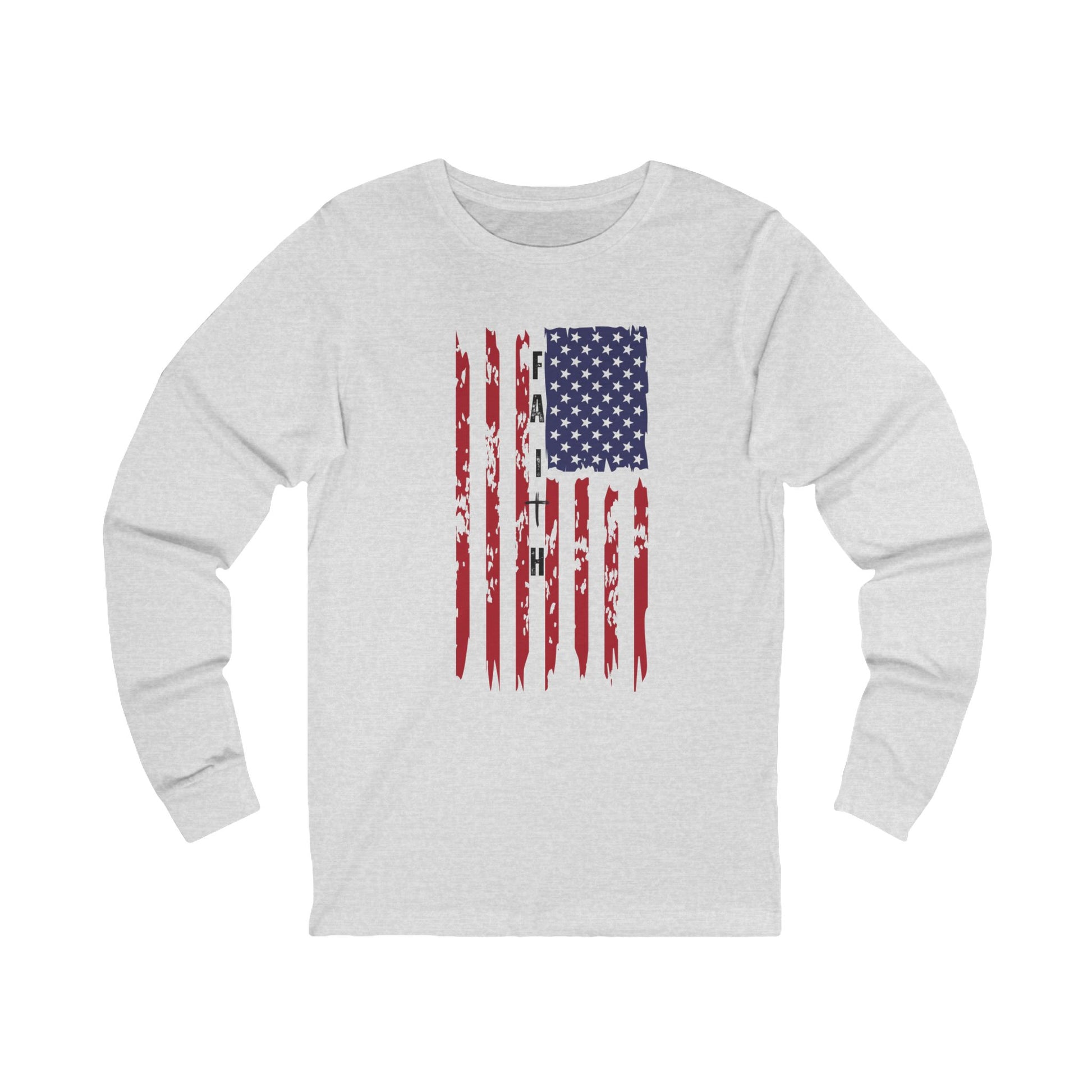 Show your pride and belief with this inspiring long sleeve t-shirt that blends patriotism and faith in one bold design. Featuring a powerful combination of the American flag and the cross, this shirt is a tribute to the values that guide us: freedom, hope, and unwavering faith. Perfect for those who stand tall for their country and stay grounded in their beliefs, it’s a statement of strength, unity, and purpose. Comfortable, stylish, and meaningful, this long sleeve tee is your go-to for celebrating faith and freedom, whether at home, church, or community events.