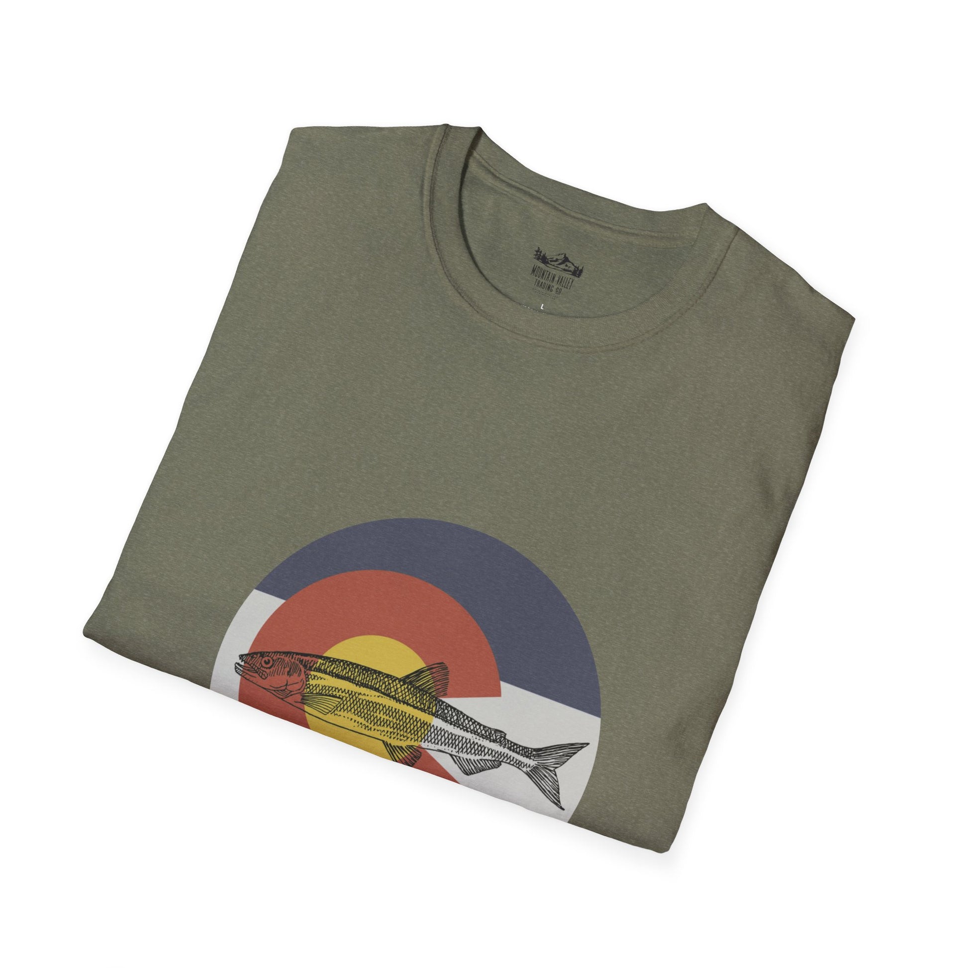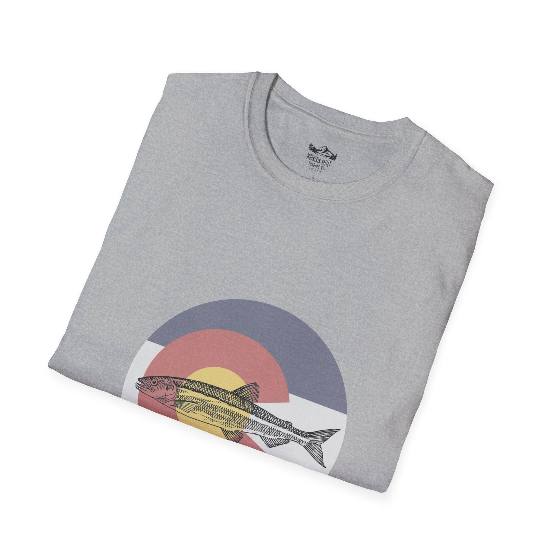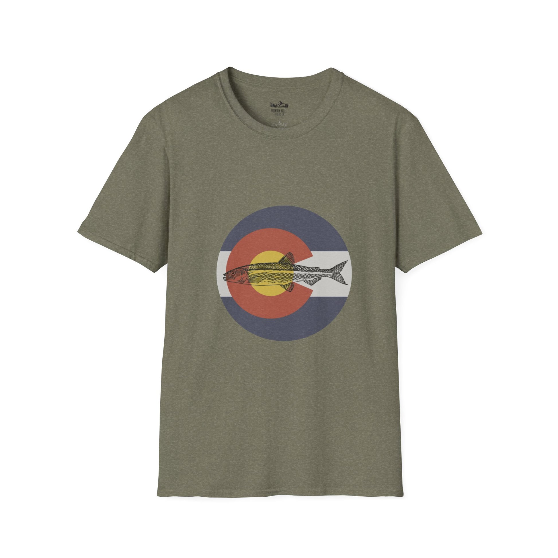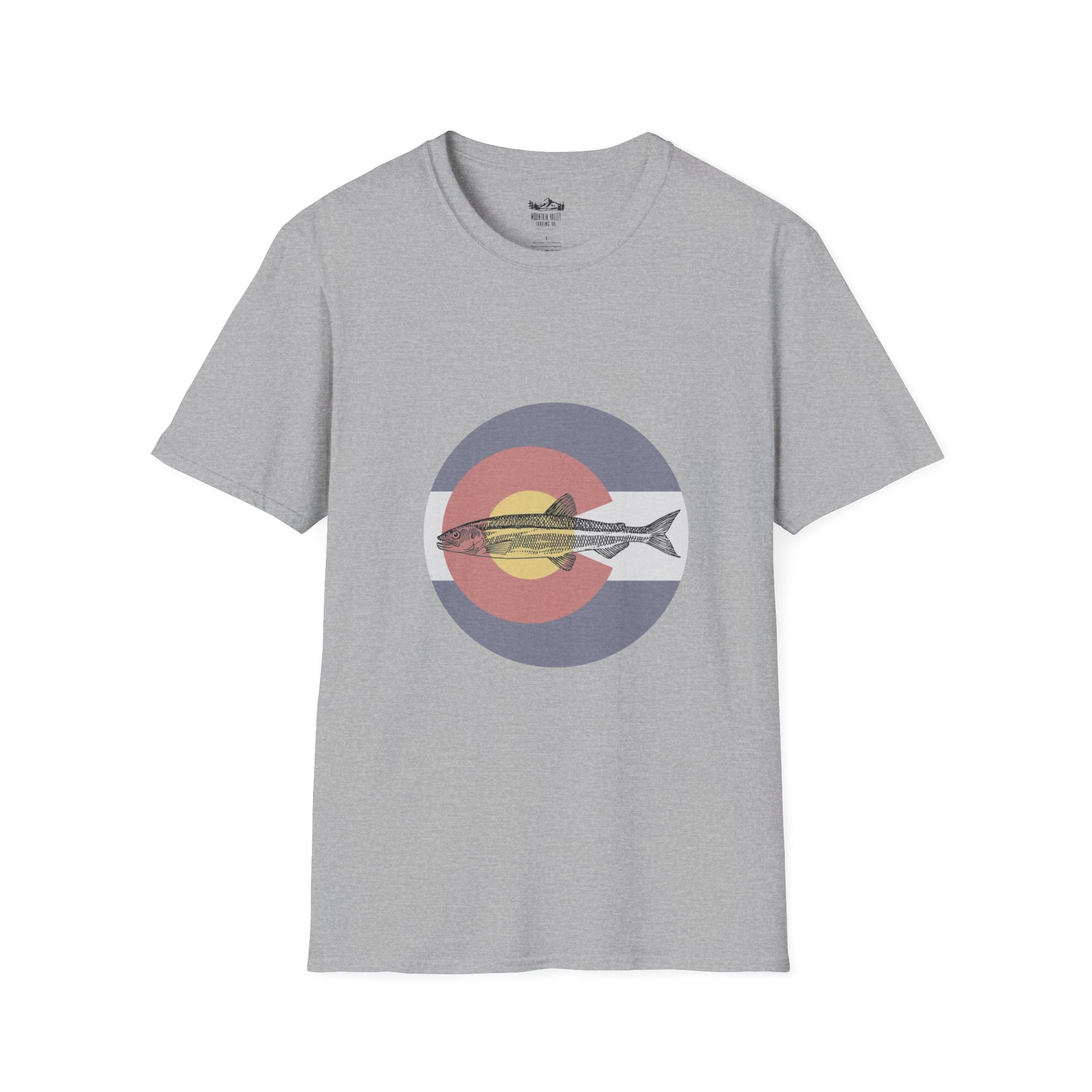 A perfect blend of wild beauty and state pride, this design features a sleek, vibrant trout intertwined with the iconic Colorado flag "C." The trout, symbolizing the untamed spirit of Colorado’s pristine rivers and alpine lakes, glides effortlessly beneath the golden sun and bold blue stripes of the state flag. It's a tribute to the adventurous souls who find peace casting lines into crystal-clear waters beneath the towering Rockies. A must-have for those who carry the heart of Colorado and a love for fishing wherever they go.