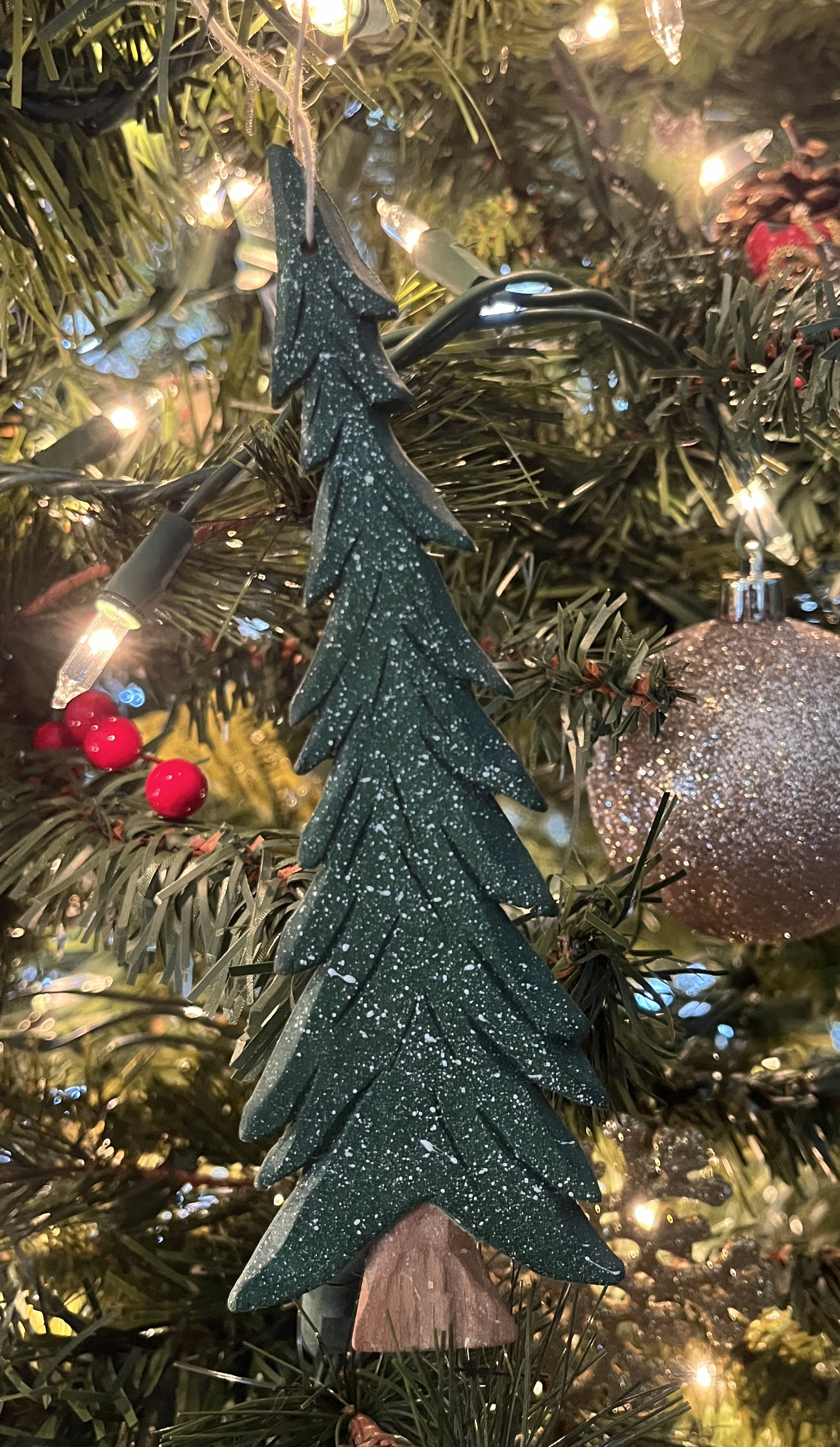 A simple, rustic evergreen dusted with snow — this Flat Tree Ornament brings quiet winter beauty to your tree. Slim, woodsy, and handcrafted, it has that mountain-morning feeling your customers love: crisp air, fresh snow, and peaceful stillness. A small ornament with a whole lot of Christmas calm.