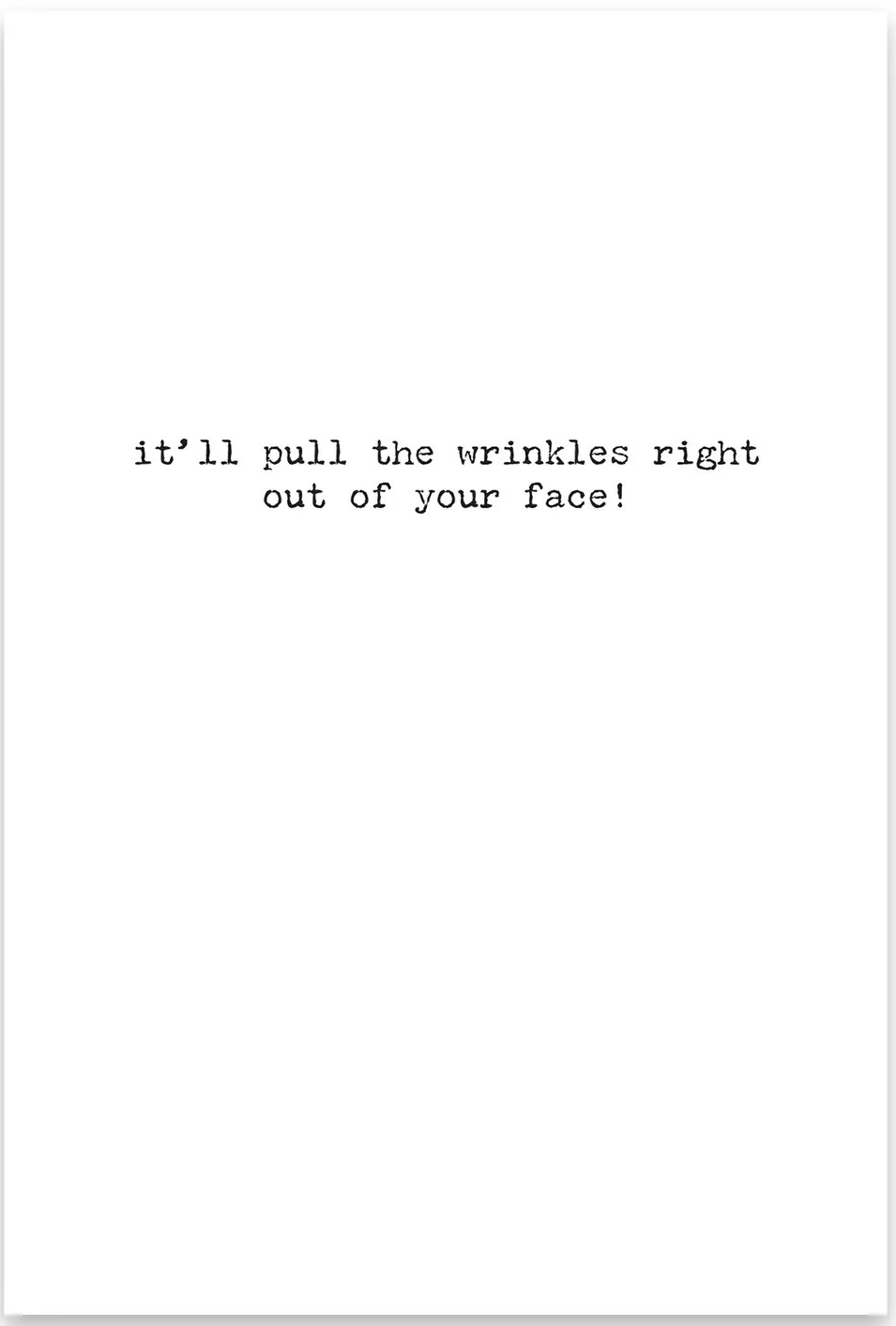 A humorous greeting card lending a vintage photograph to coordinate with its outside "Go Braless..." sentiment and inside "It'll Pull The Wrinkles Right Out Of Your Face!" sentiment.