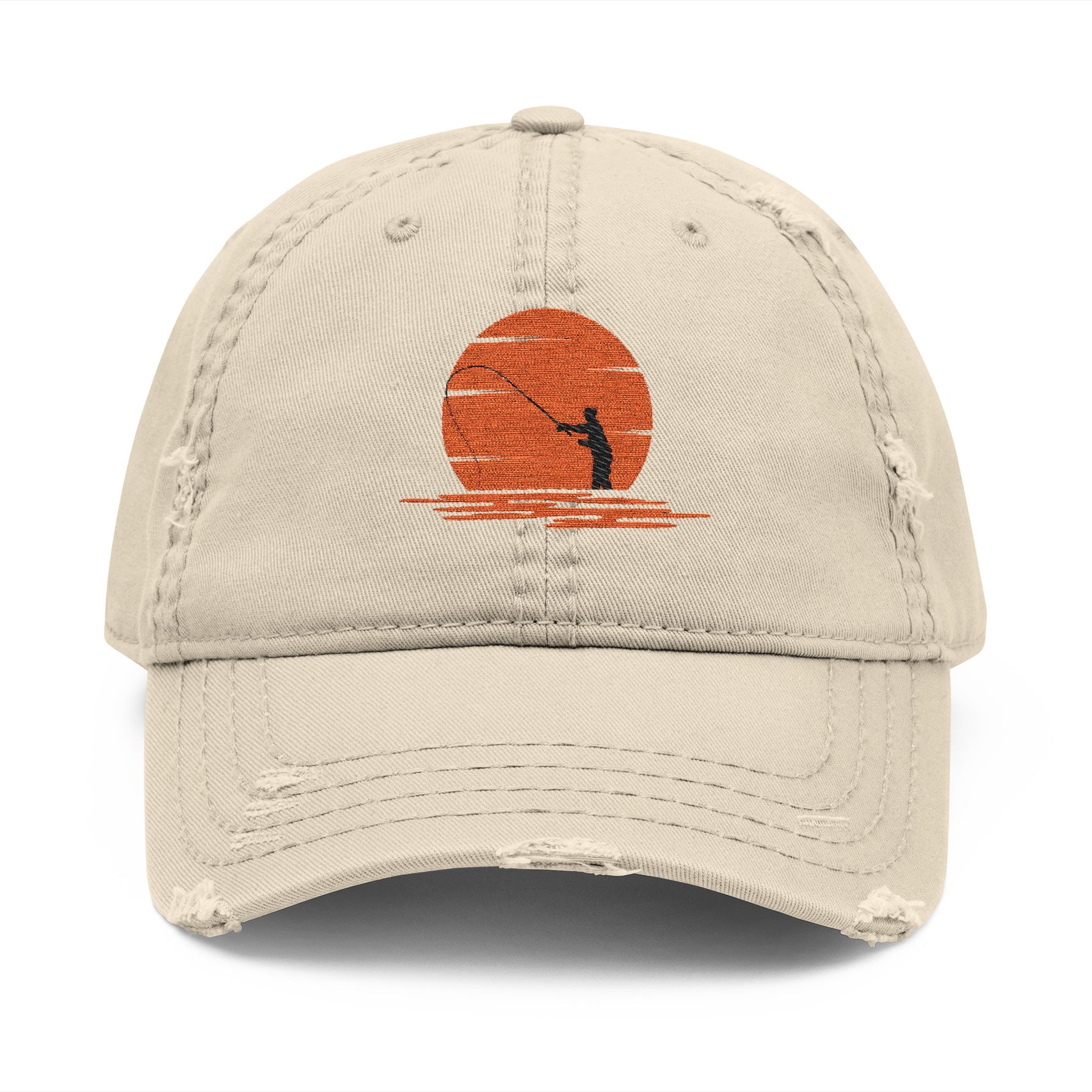 Quiet. Calm. Perfectly broken in. The Still Waters distressed cap blends your love for the outdoors with rustic style. Featuring a mellow sunset and a solitary angler in silhouette, this hat doesn’t shout—it nods.