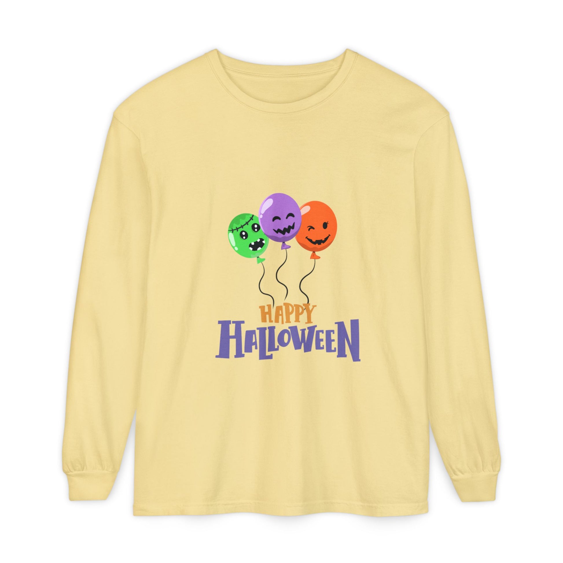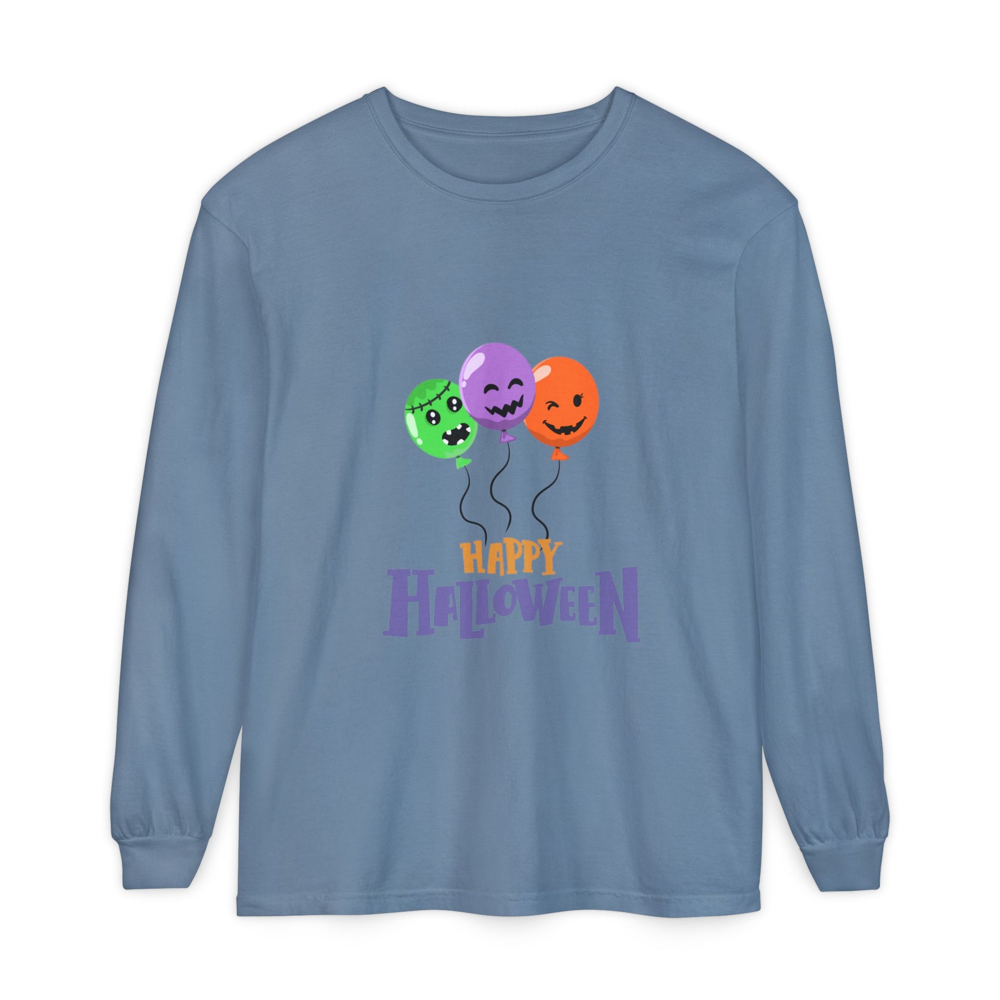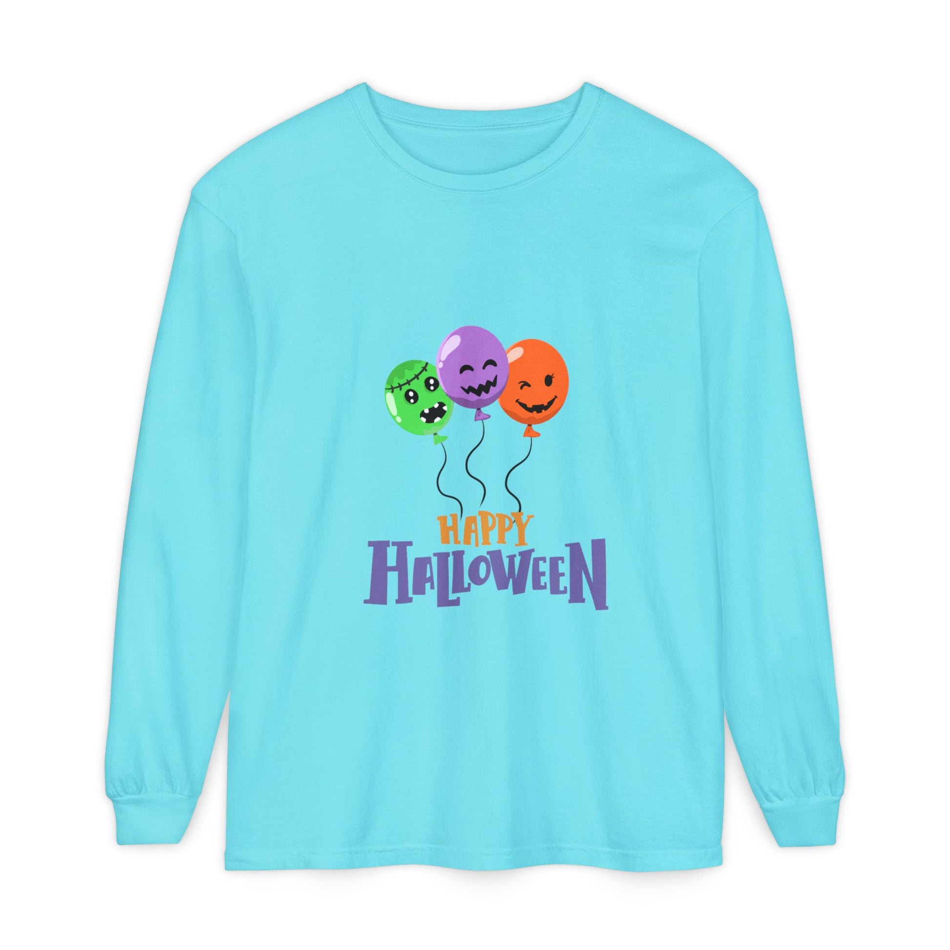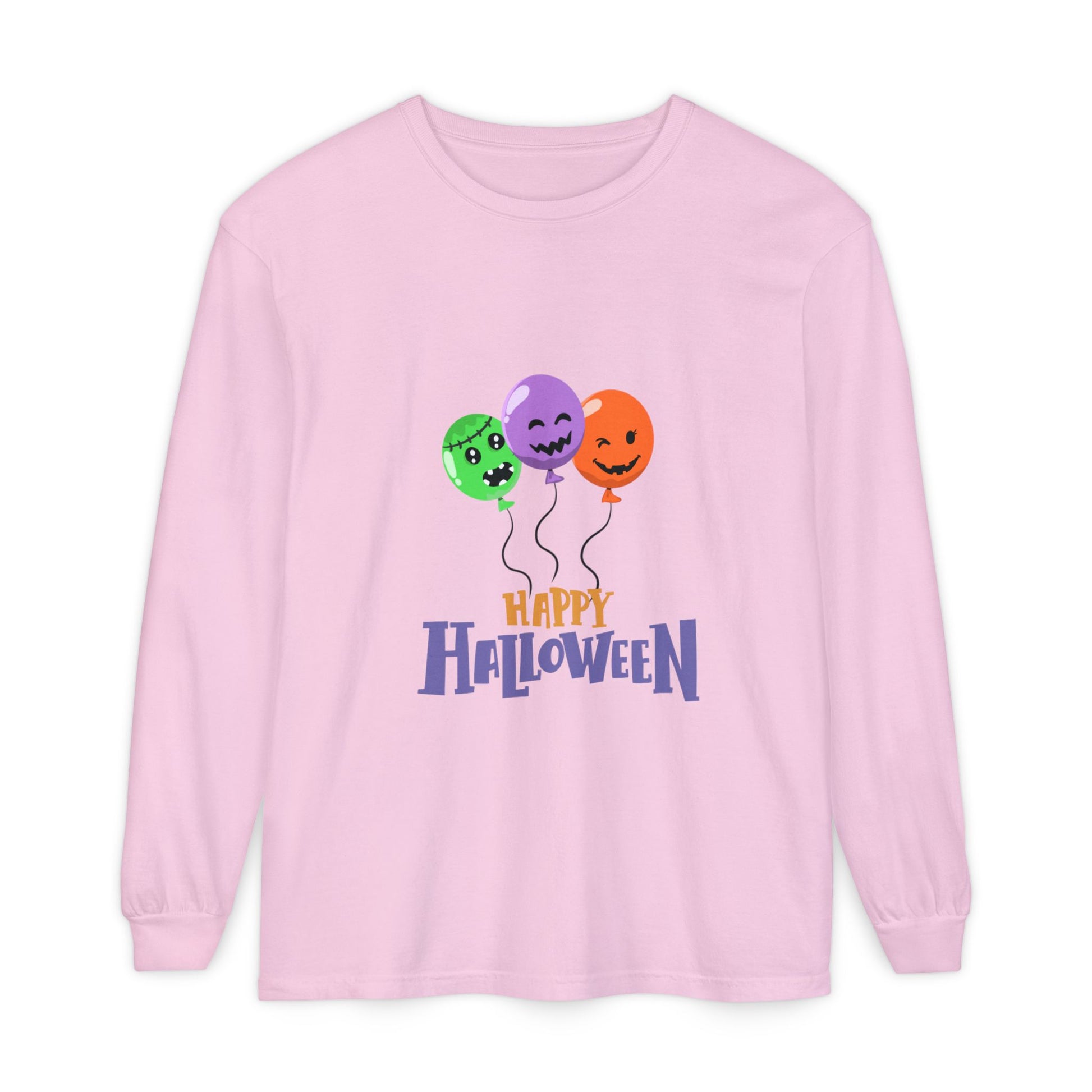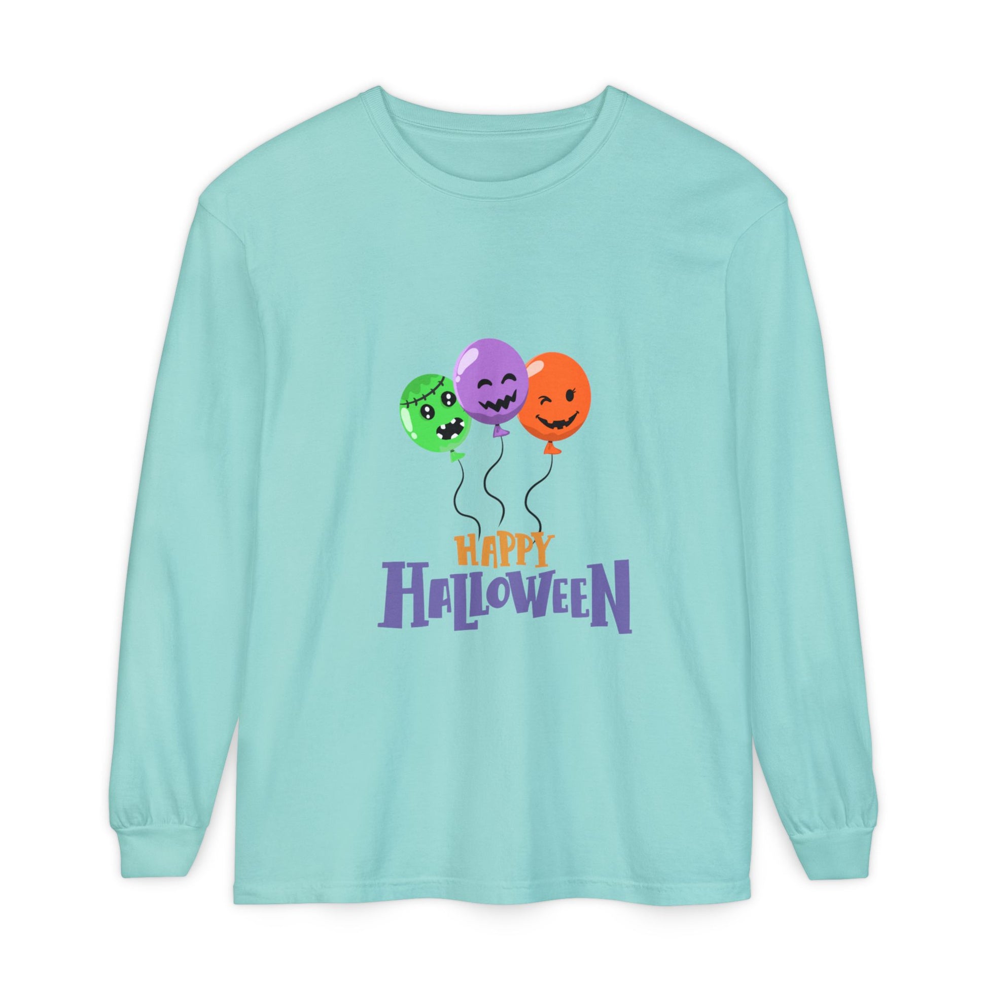 Bring the fun (not the fright) to your classroom this season! This cheerful long sleeve tee features a playful bunch of Halloween character balloons — think ghosts, pumpkins, bats, and friendly monsters floating by with big smiles. Perfect for teachers who want to join the festive fun while keeping things lighthearted and kid-approved.