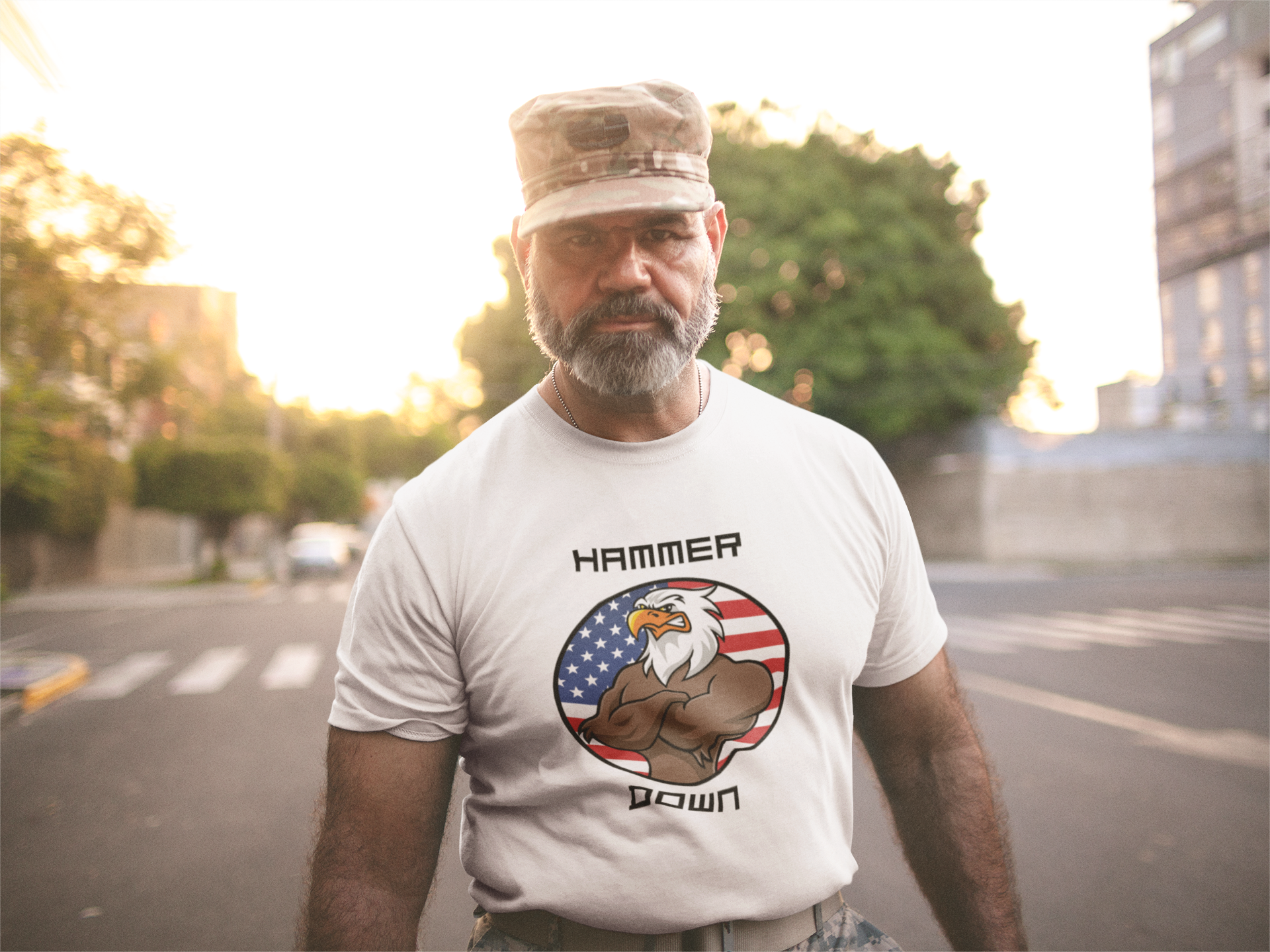 Not your average bird. This eagle’s got his arms crossed and attitude dialed in. With a smirk that says “don’t mess,” and wings folded like a boss, this tee brings big energy and bigger freedom. Whether you're out on the trail or just flexing American pride, this shirt says one thing loud and clear: Hammer Down.