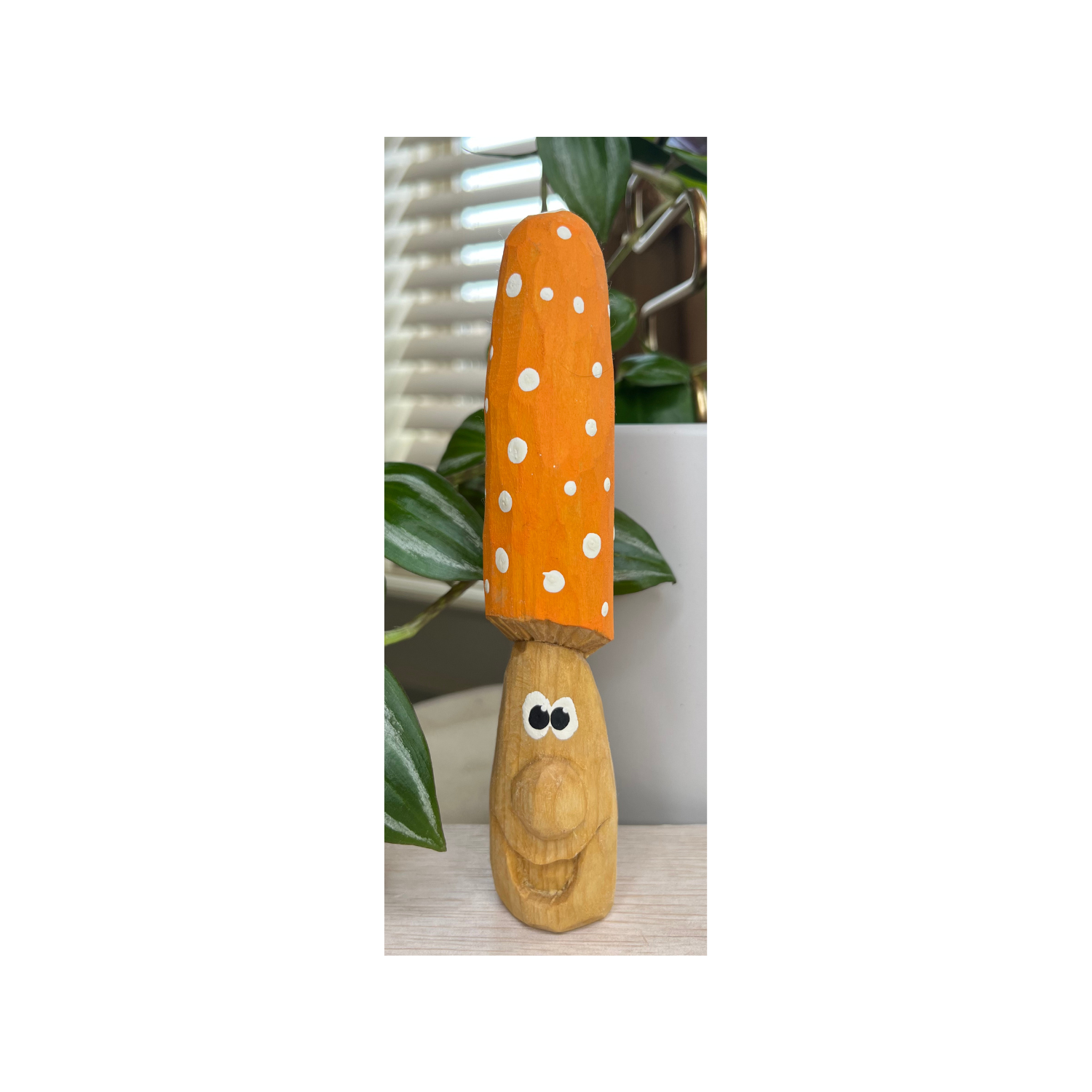 Meet our little mushroom friend! Handcarved with love and bursting with charm, this joyful mushroom brings a smile wherever it goes. With its playful cap and sweet, sparkling eyes, it’s the perfect addition to any cozy space. Crafted from wood and painted with care, this happy mushroom is ready to spread a little magic and brighten up your day!