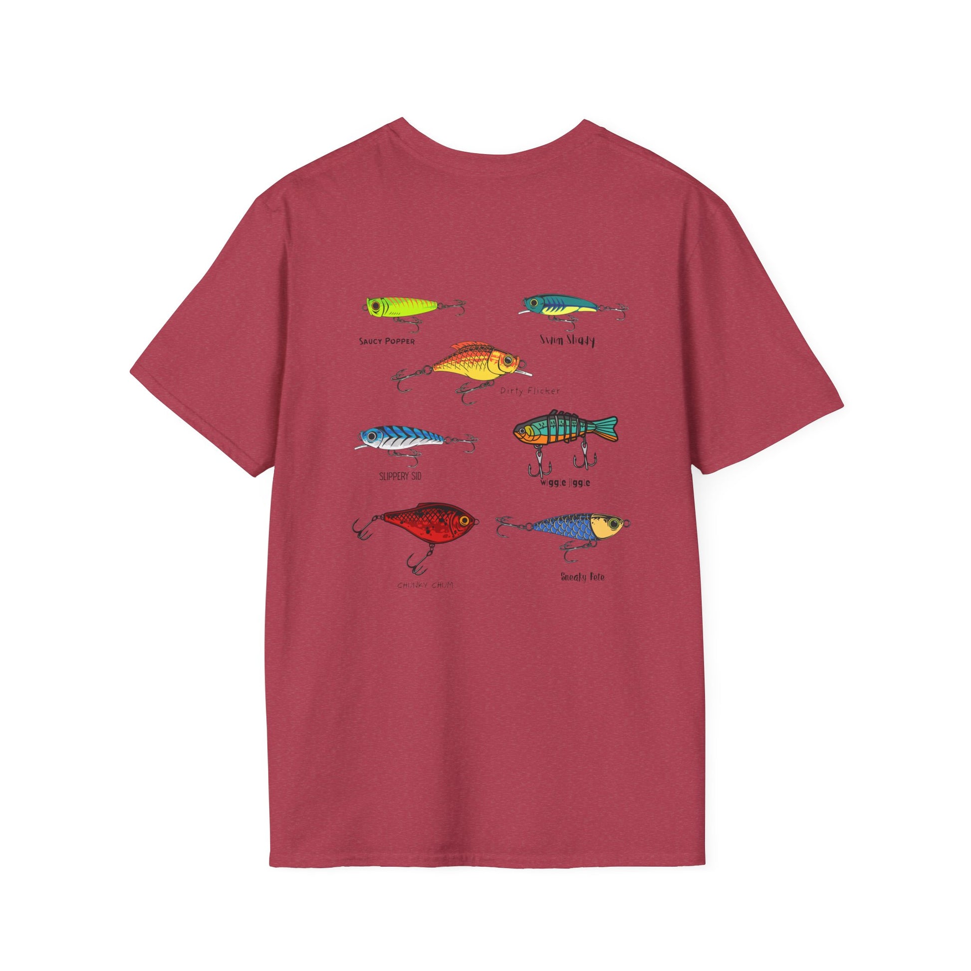 Introducing the ultimate fishing shirt for those who know the best lures come with names you probably shouldn’t say in front of grandma. Whether you’re casting a Dirty Flicker, a Chunky Chum, or the infamous Wiggle Jiggle, this shirt says “I’m here for the big catch — and the bigger laughs.”