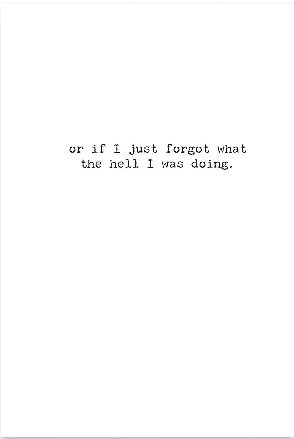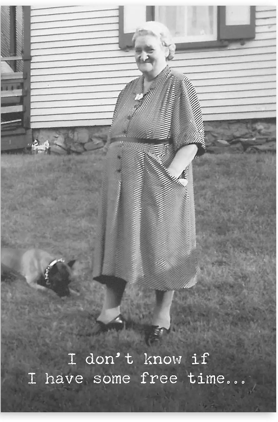 A humorous greeting card featuring vintage photography with outside "I Don't Know If I Have Some Free Time..." and inside "Or If I Just Forgot What The Hell I Was Doing." sentiments.