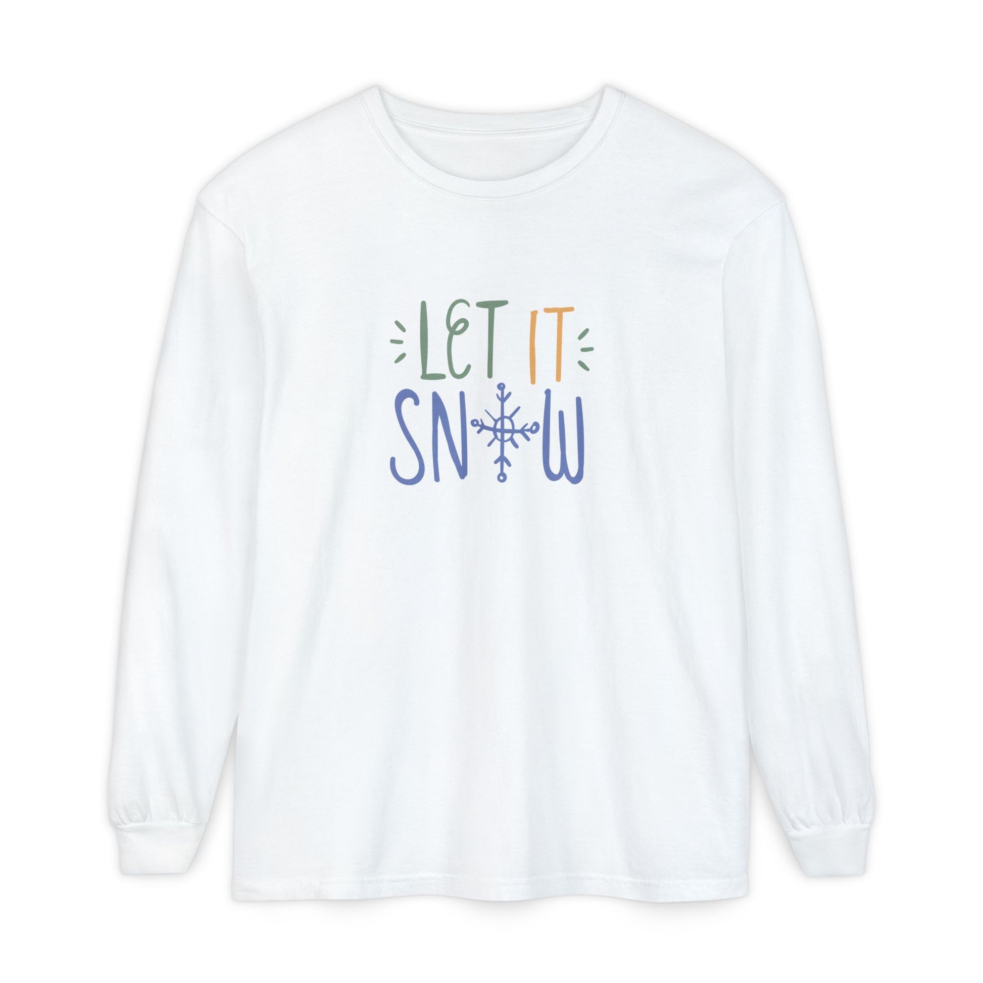 Embrace the magic of winter with our Let It Snow Long Sleeve Tee. Featuring a playful mix of colors and a snowflake twist on the lettering, this cheerful design brings instant seasonal joy. Soft, lightweight, and perfect for layering, it’s the shirt you’ll reach for when the temperature drops and the cocoa starts calling.