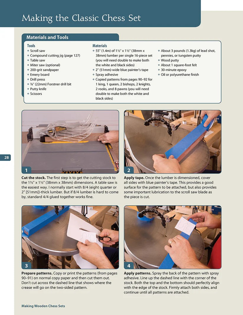 Chess is played by millions of people worldwide. It holds a certain status to those who play it, often displaying their game boards as part of their décor. Woodworker and author Jim Kape takes this competitive mind sport to the next level, with 15 classic and modern designs of chess sets that are true conversation starters. Making Wooden Chess Sets includes patterns to create sets inspired by Paris, San Francisco, Henry VIII, and Neo-Classic design. The Berlin chess set will give chess enthusiasts and woodworkers a new viewpoint of the game with its vertical board that mounts on the wall. Also included - all the information needed to construct a handsome chess board, a travel chess set, and a range of storage boxes. With his use of beautiful exotic woods, and a high level of craftsmanship, Kape will have everyone from chess set collectors, to scrollers and woodworkers, interested in creating unique, heirloom-quality sets with this interesting book.