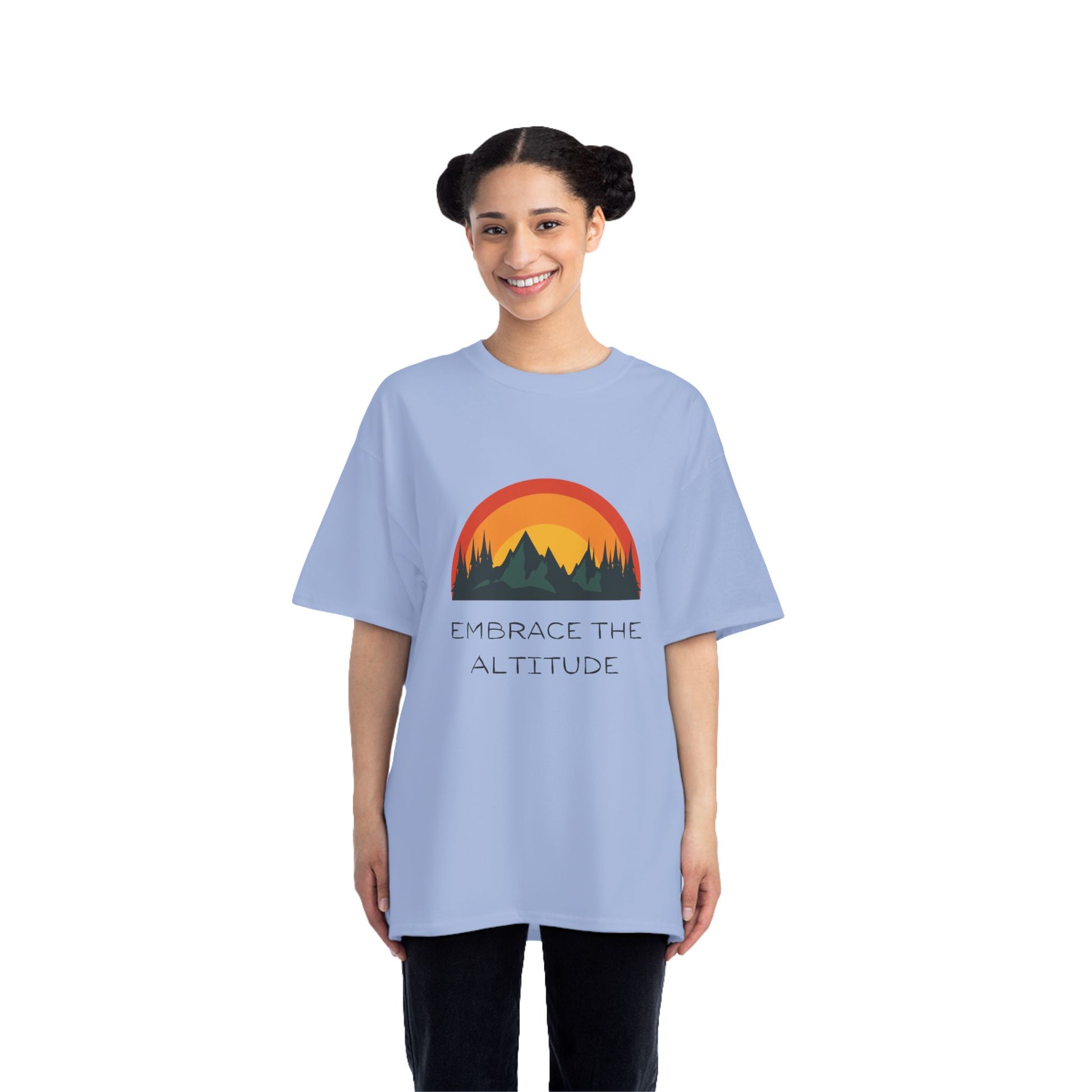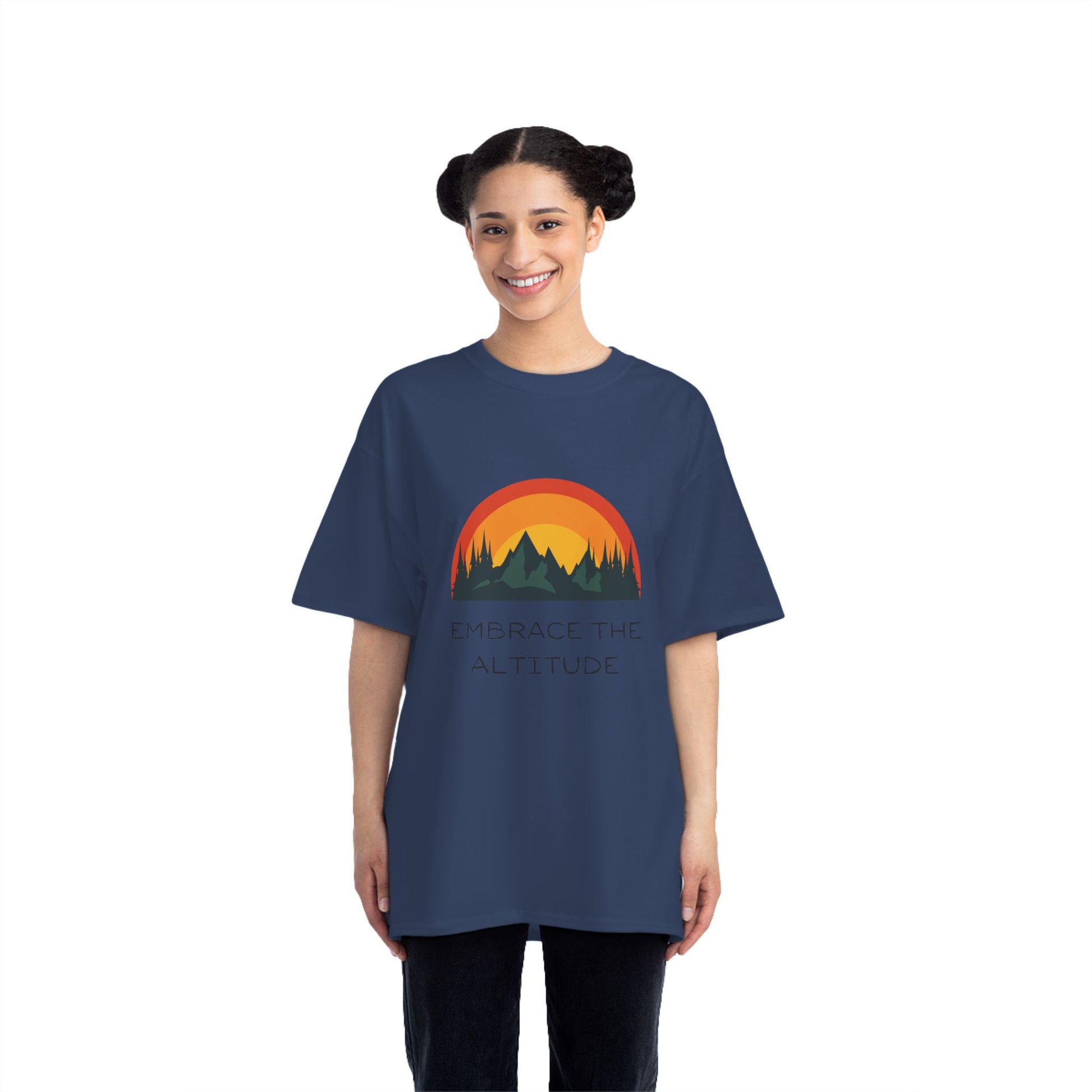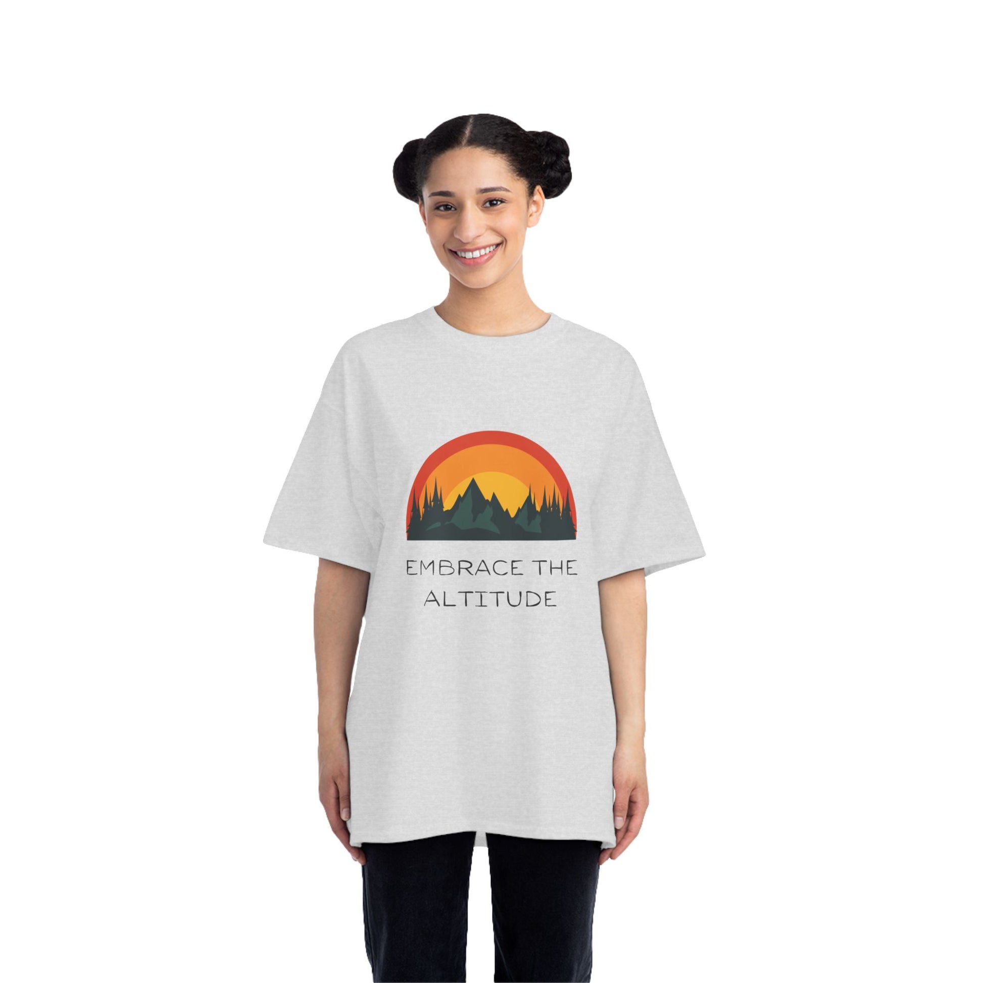 Embrace the altitude with this Mountains themed T-Shirt. Perfect for hiking enthusiasts who enjoy outdoor adventures. Ideal for those who love exploring nature and being active. Great for celebrating National Trails Day or Earth Day.