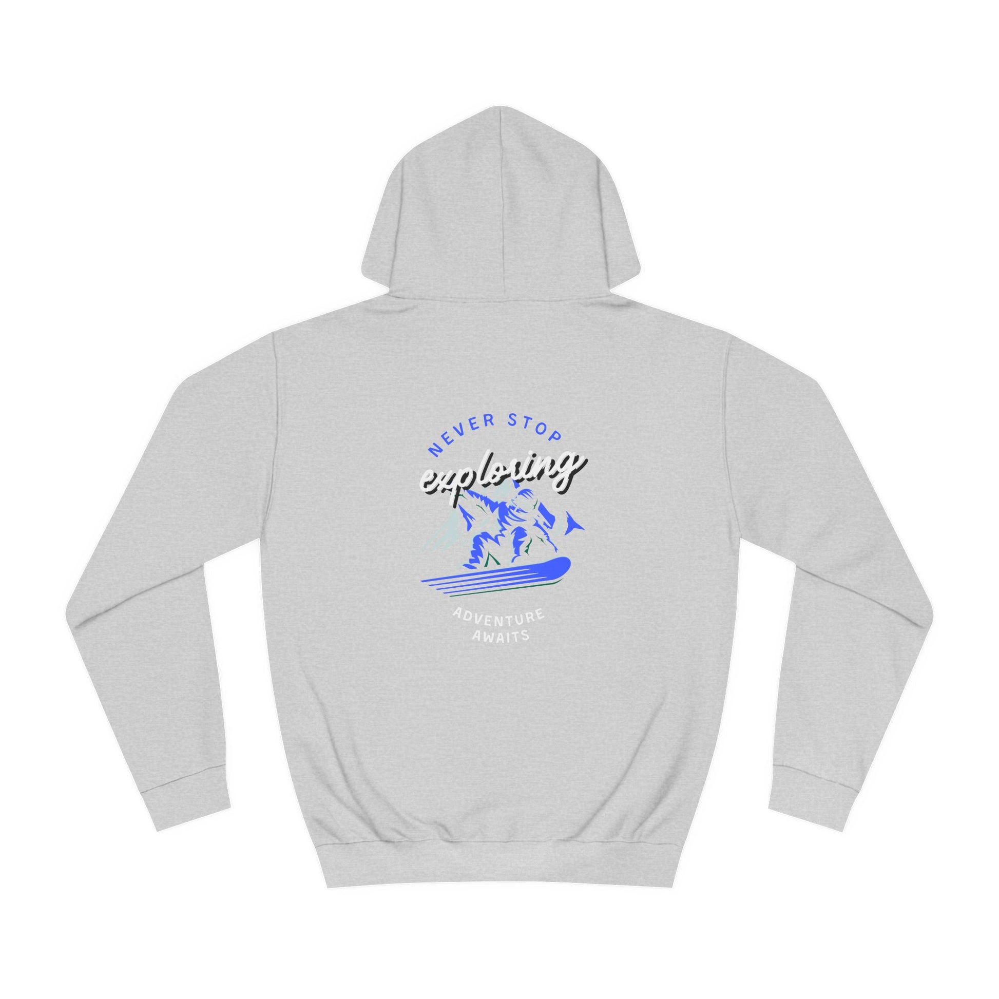 Hit the slopes in style with this epic snowboard-themed Hoodie that captures the thrill of the ride and the call of adventure! Featuring bold graphics of a snowboarder carving through fresh powder, paired with the inspiring slogan "Never Stop Exploring", this hoodie is perfect for those who live for the mountains and the adrenaline rush.