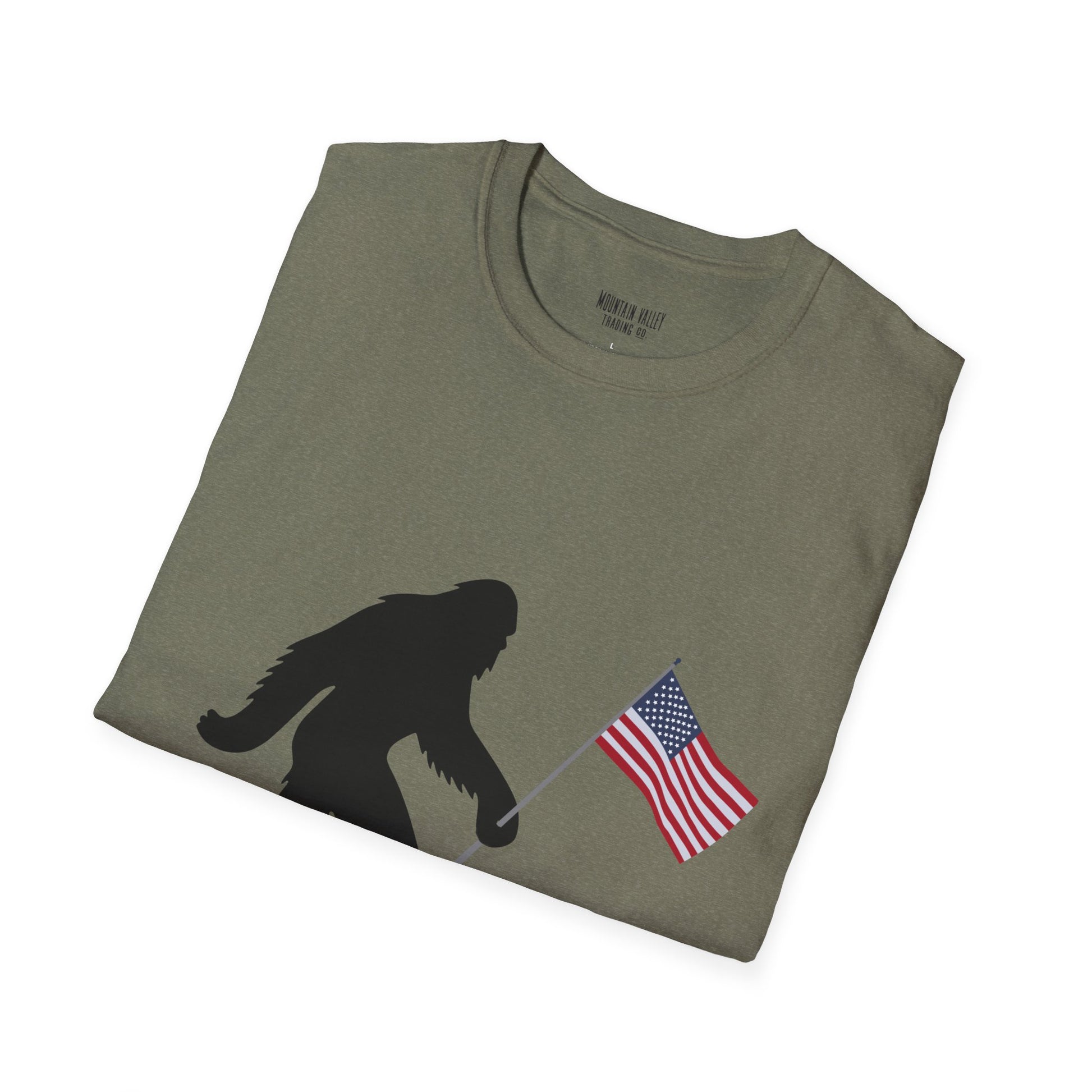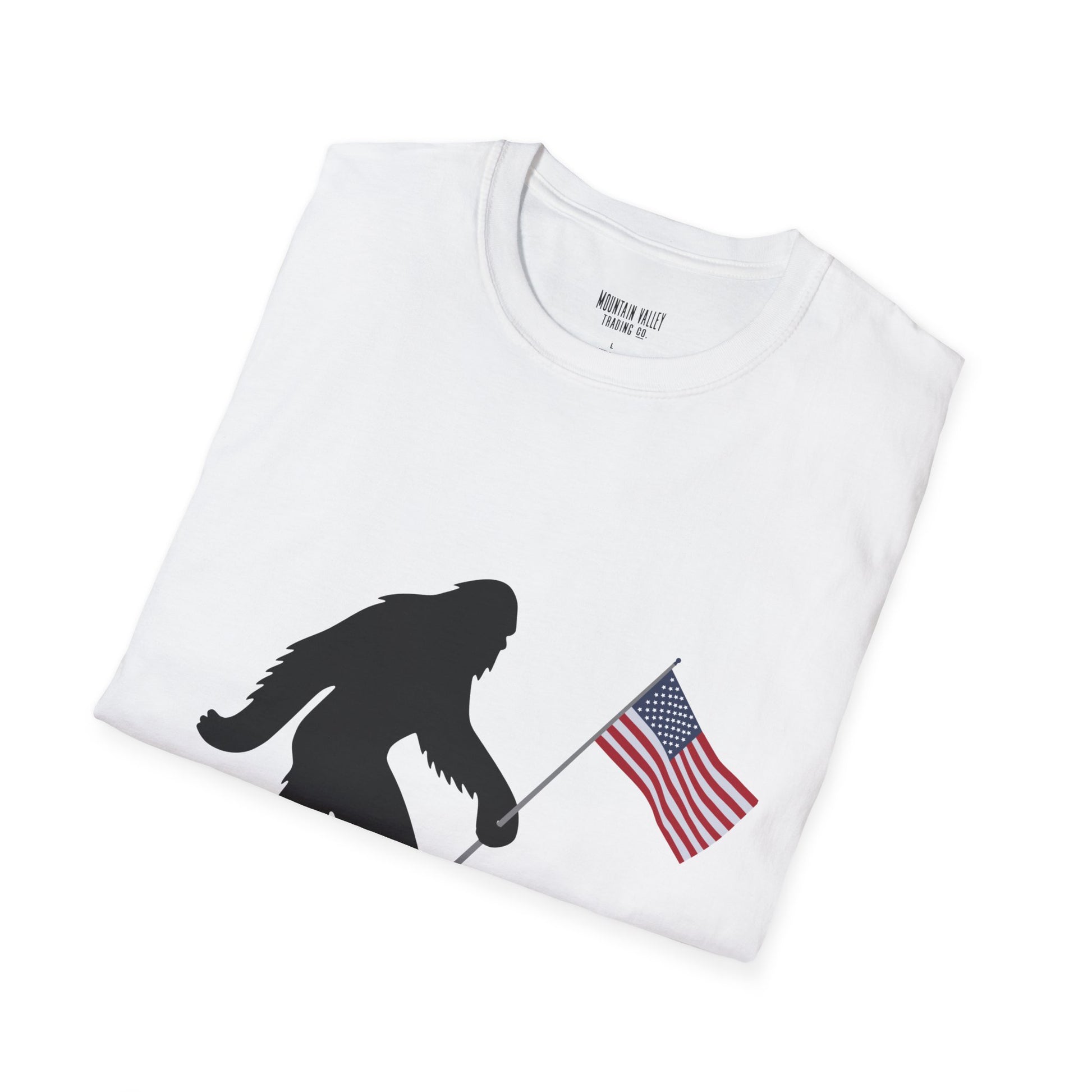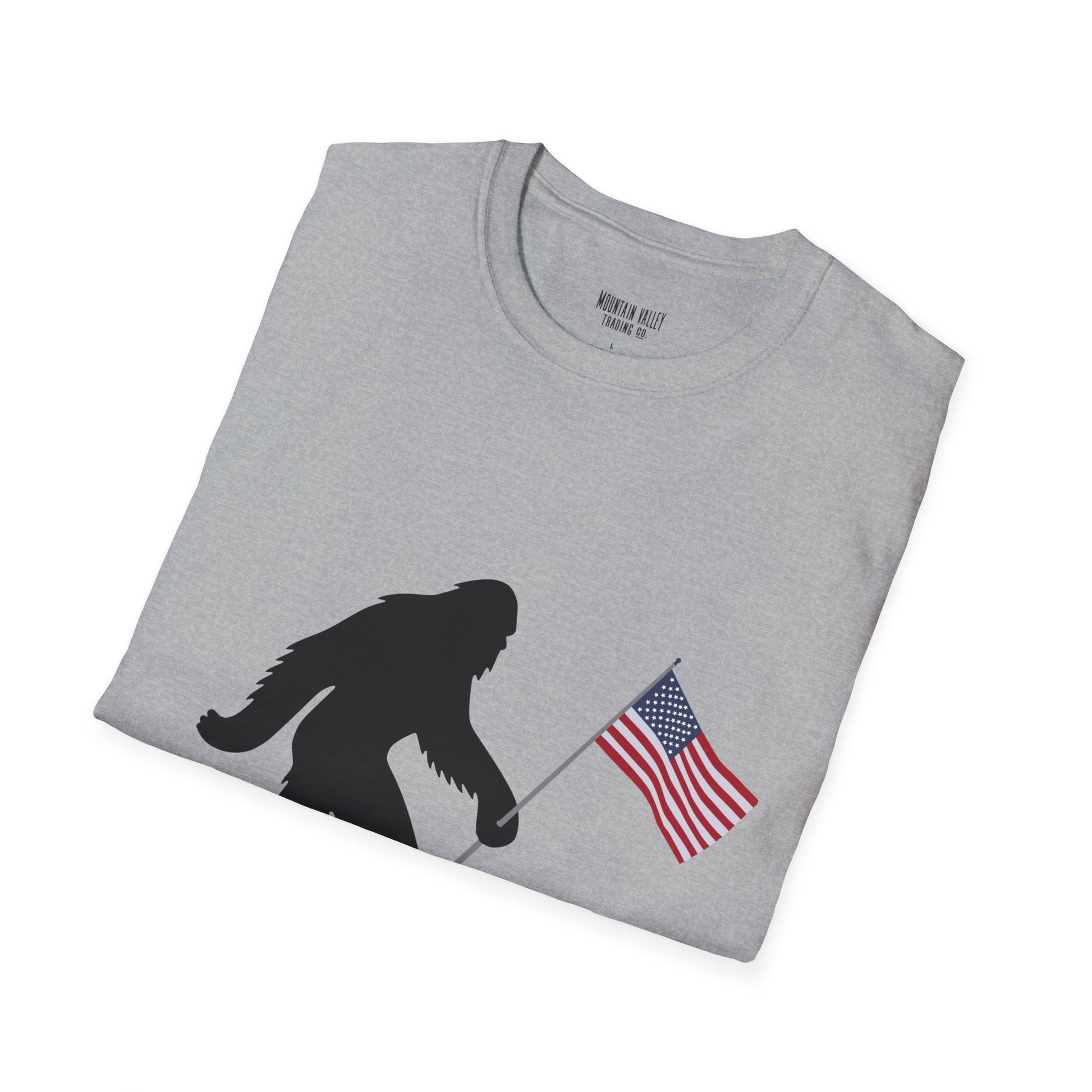 America’s most legendary creature just got more legendary. This tee features Sasquatch proudly carrying the Stars and Stripes—because even Bigfoot believes in freedom. Whether you're off the grid or just off the beaten path, this shirt is made for those who roam wild and stand proud. USA strong, squatch approved.