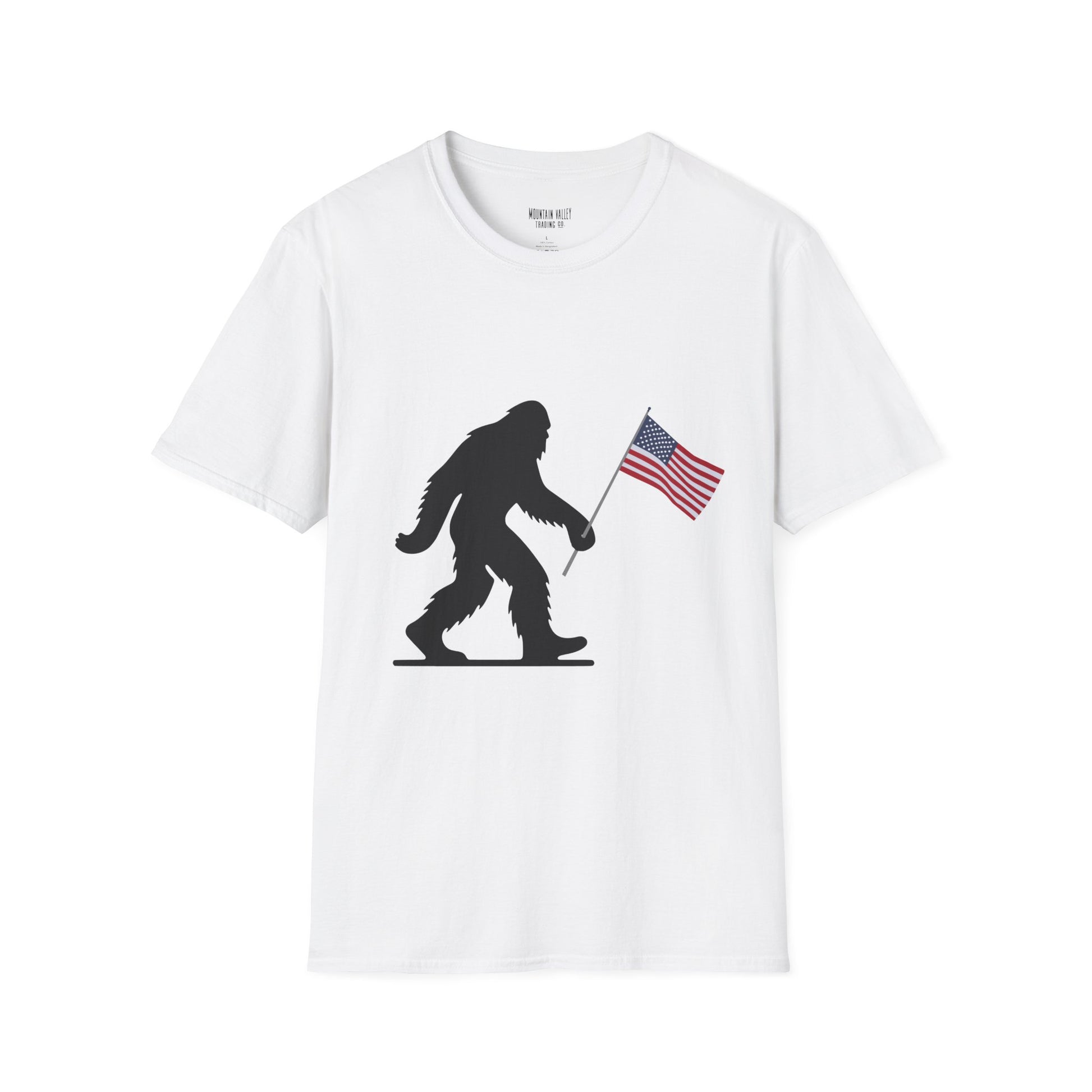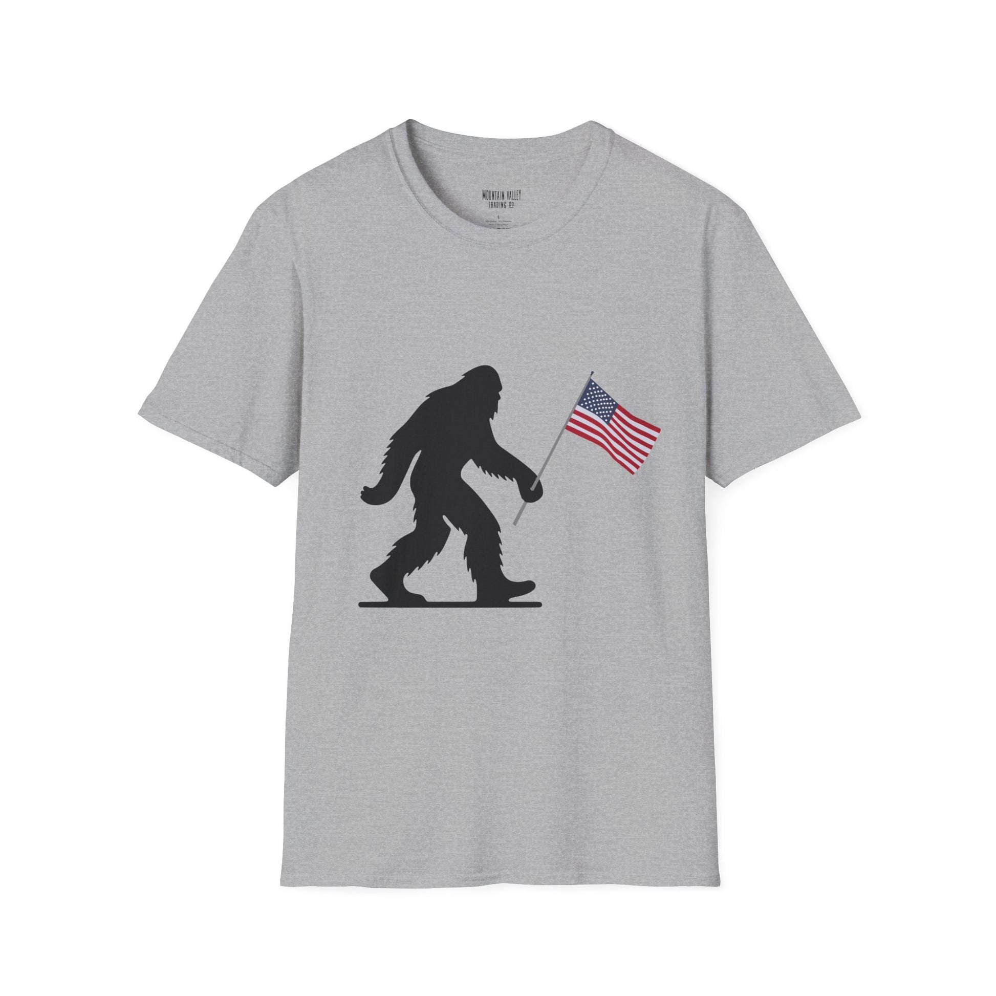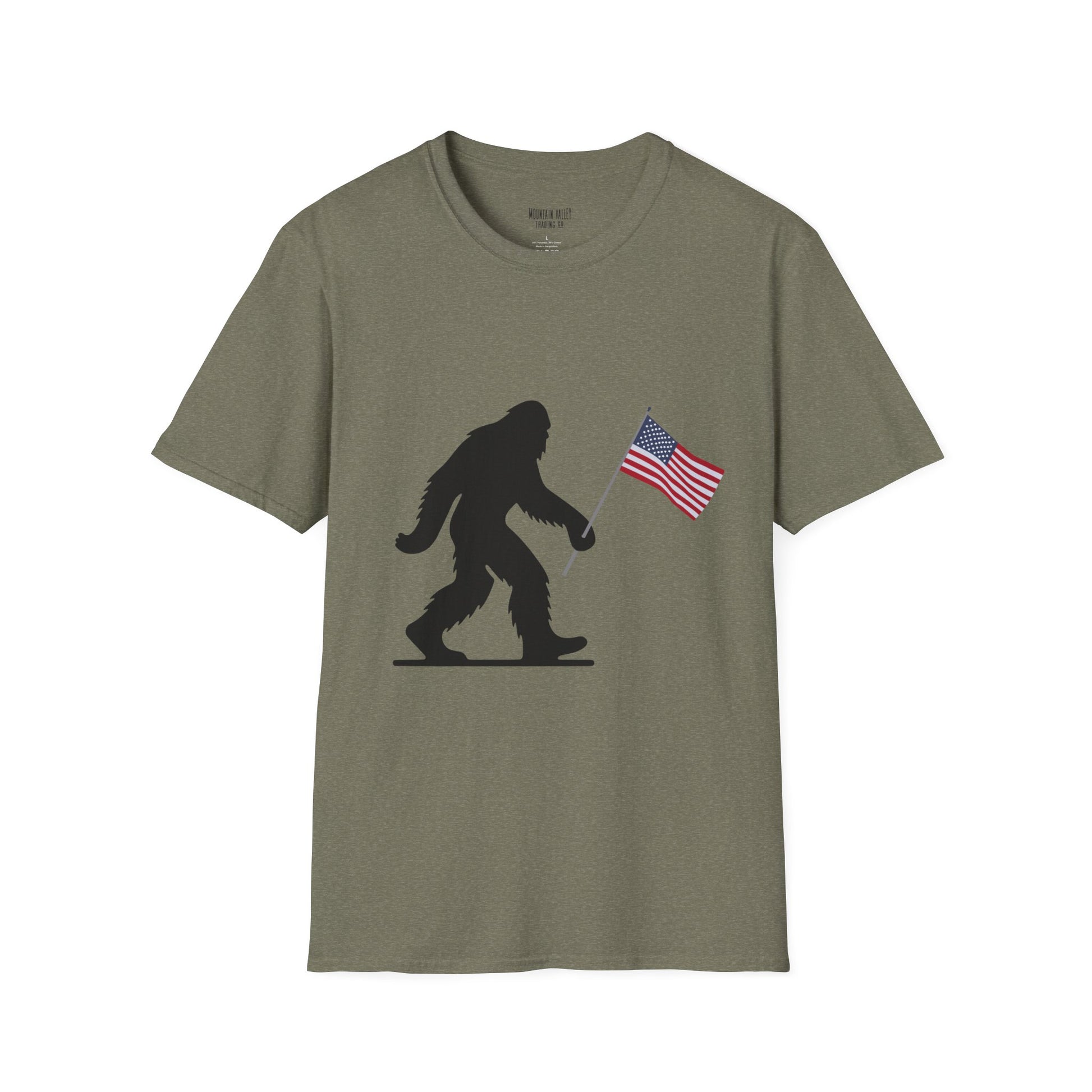 America’s most legendary creature just got more legendary. This tee features Sasquatch proudly carrying the Stars and Stripes—because even Bigfoot believes in freedom. Whether you're off the grid or just off the beaten path, this shirt is made for those who roam wild and stand proud. USA strong, squatch approved.