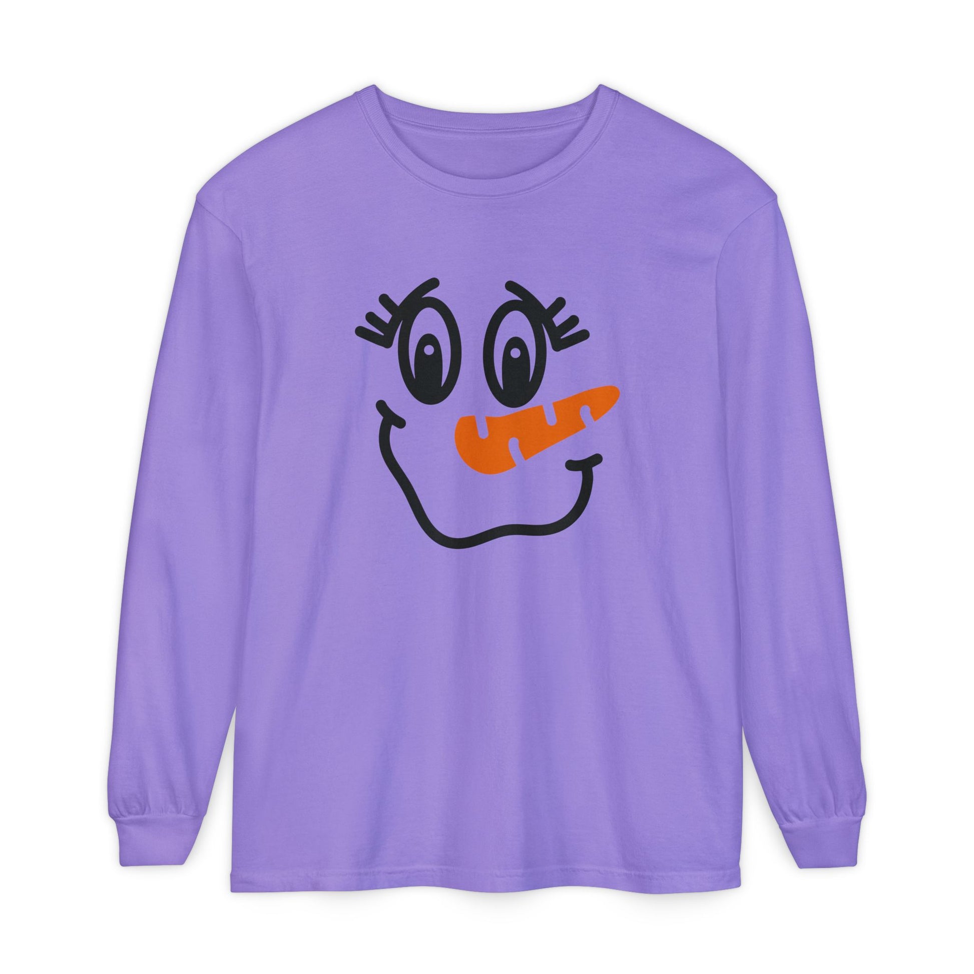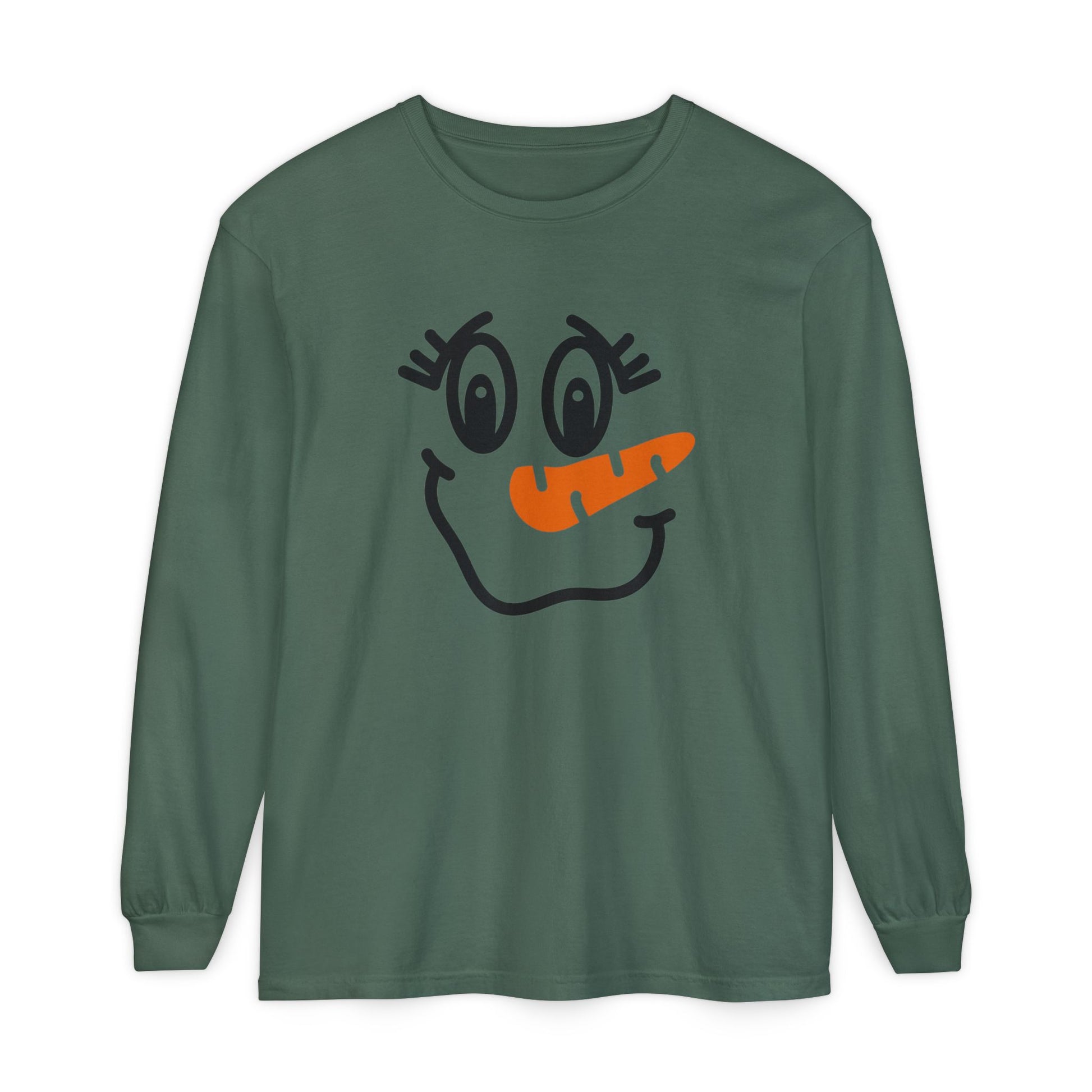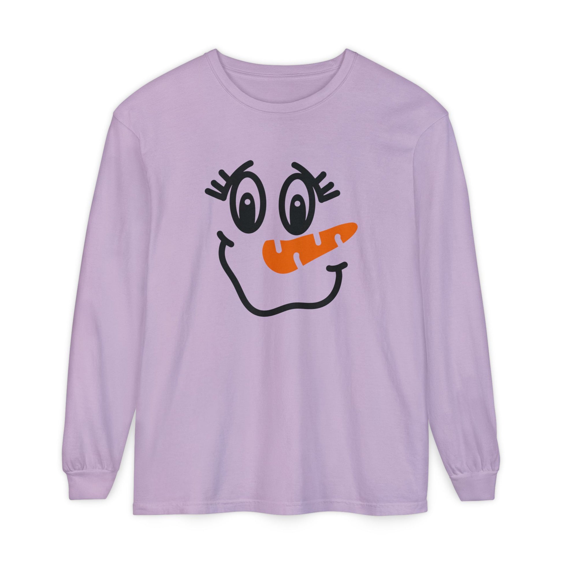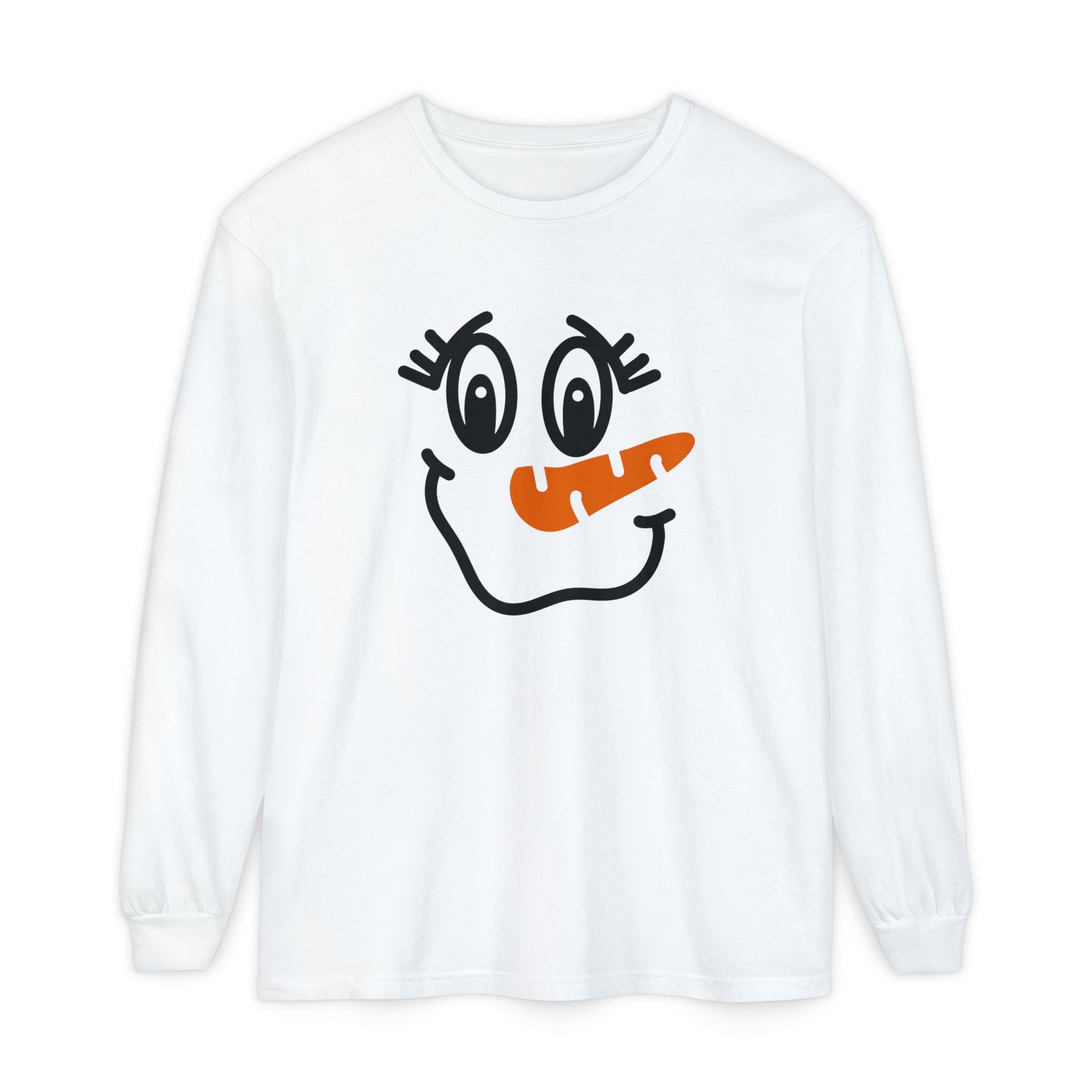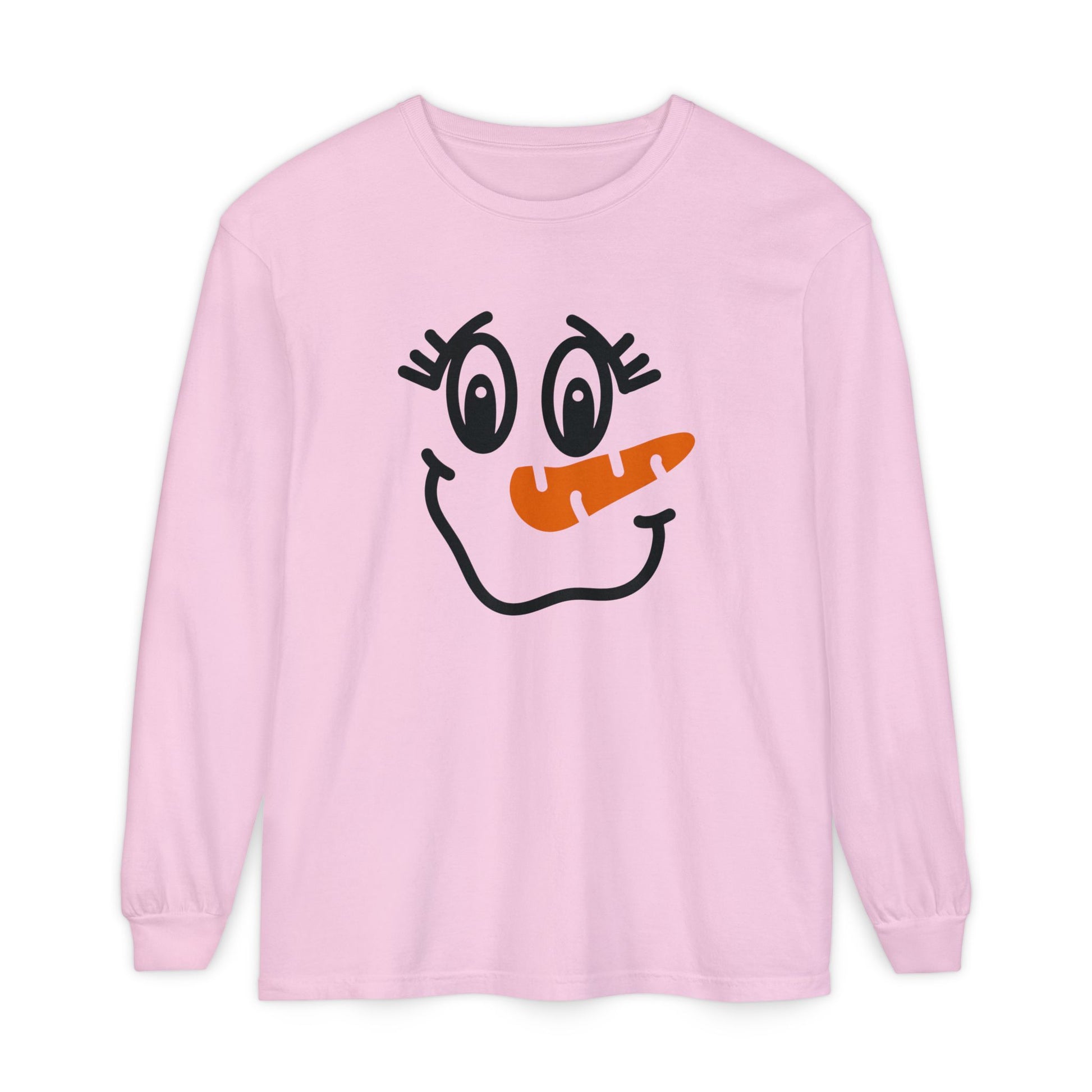 Add a little extra charm to your holiday wardrobe with our Snowflake Sweetie Long Sleeve Tee. This playful design features an adorable snowman face complete with long lashes, bright eyes, and a perfectly crooked carrot nose. Soft, cozy, and made for winter, it’s the kind of shirt that makes everyone smile.