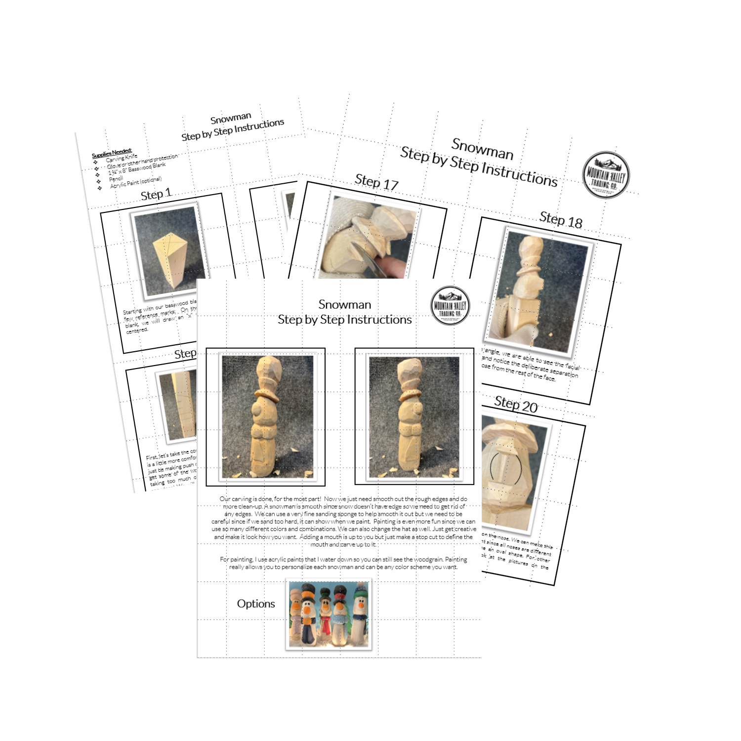 Get into the winter spirit with our Snowman Carving Kit! This learn to carve kit comes with everything you need to create your very own wooden snowman, including a Scout Knife for precision carving. The full color instructions will guide you step by step through the carving process, making it easy for woodcarving enthusiasts of all skill levels to create a charming winter decoration. Whether you're a beginner or an experienced carver, this kit is perfect for adding a touch of handmade charm to your holiday decor. Bring the magic of the season to life with this fun and creative woodcarving project!