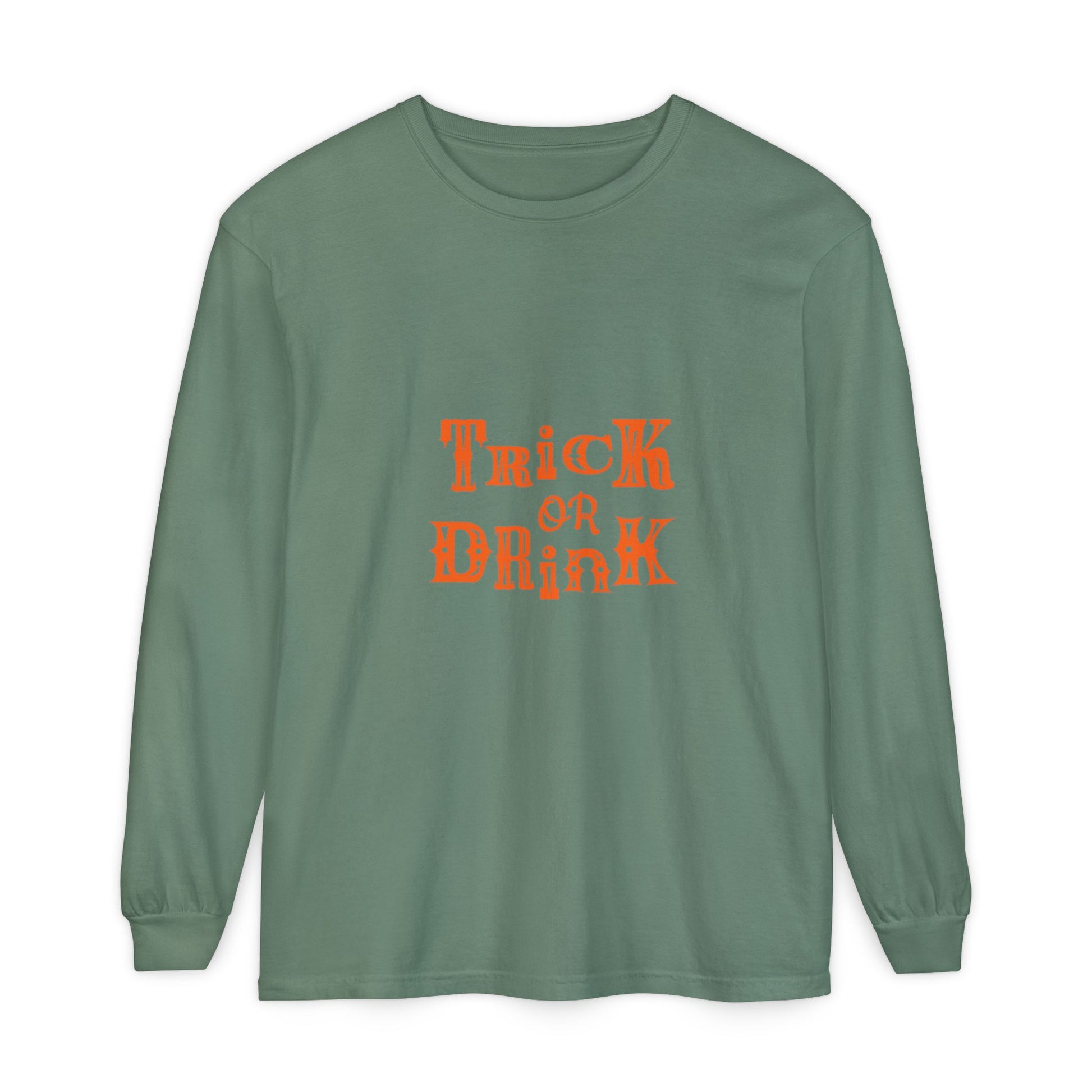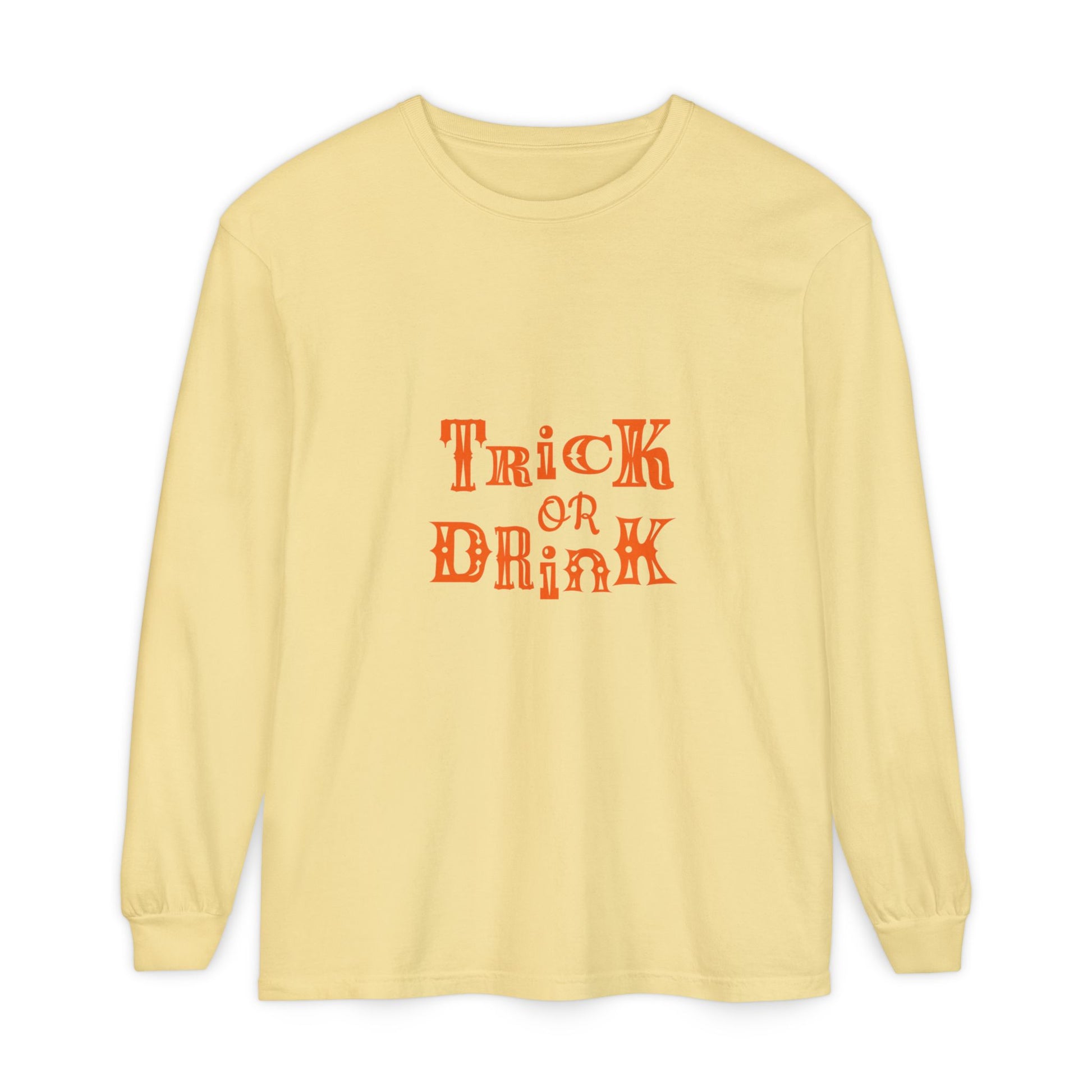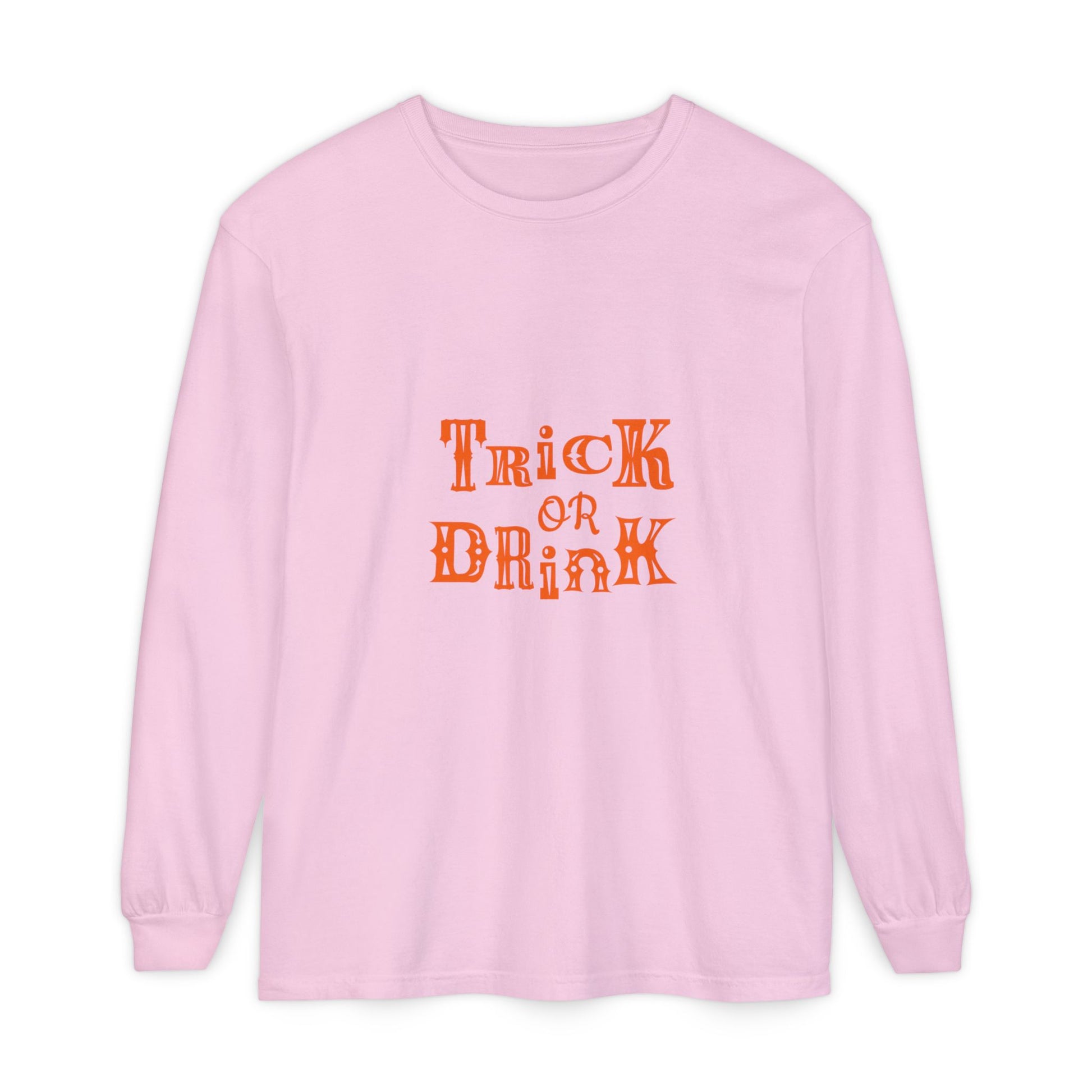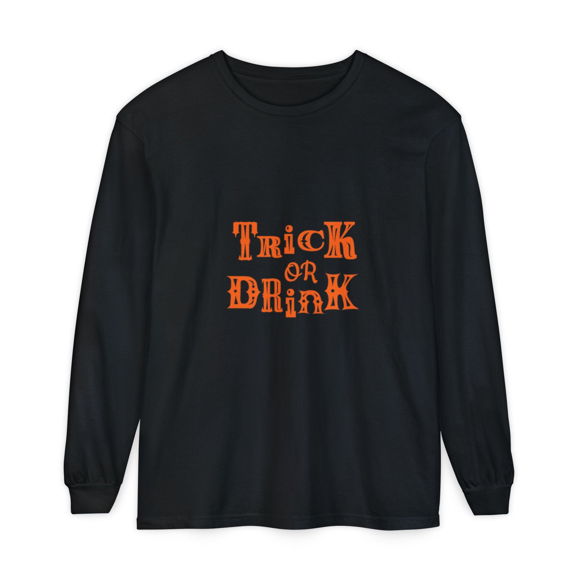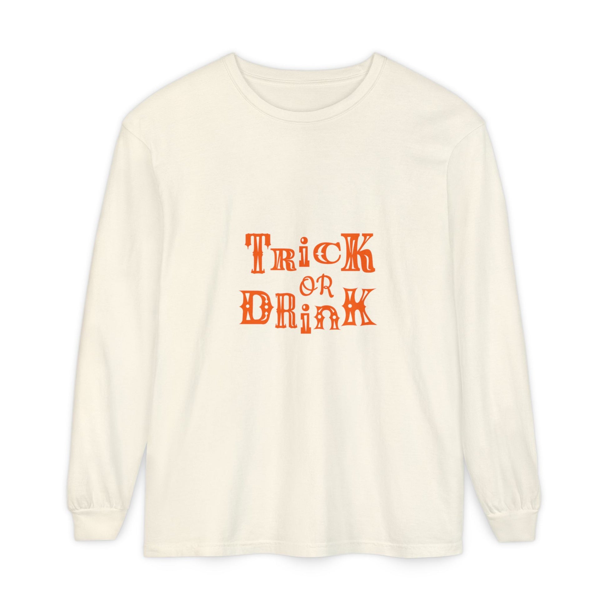 Raise your glass to spooky season with our Trick or Drink long sleeve shirt! Perfect for Halloween parties, pumpkin patch outings, or just sipping cider by the fire. Cozy, soft, and a little cheeky—this sweatshirt is the ultimate Halloween party essential.