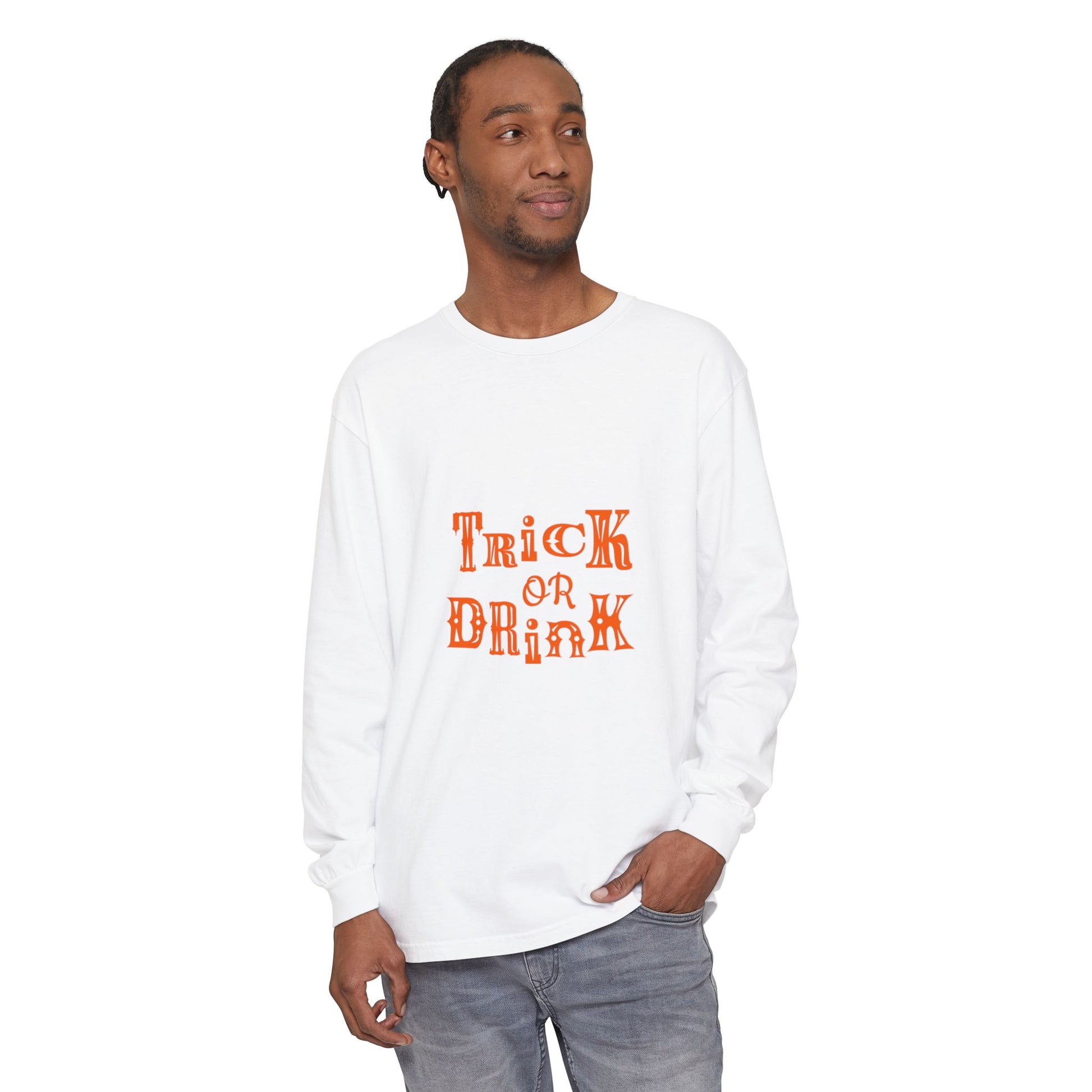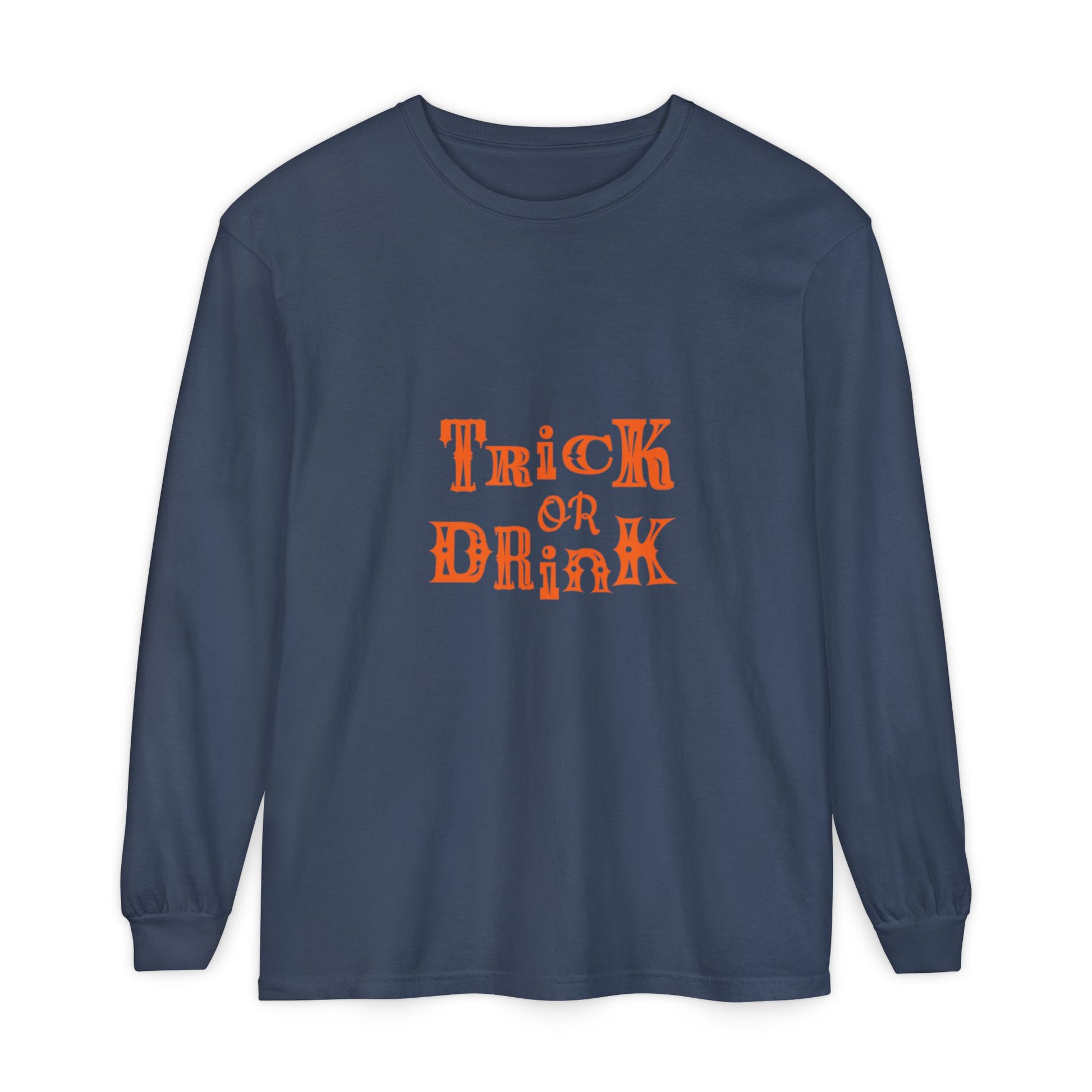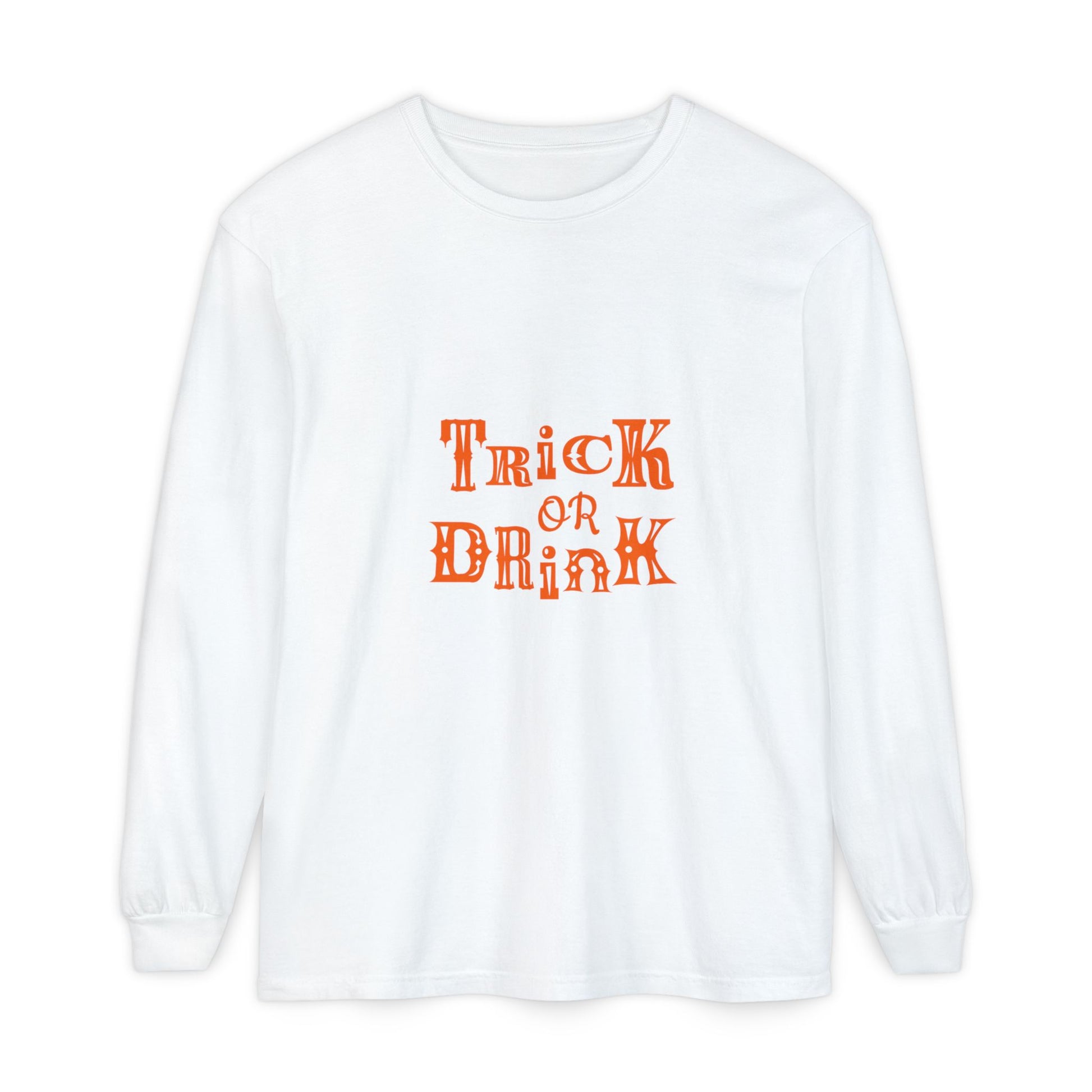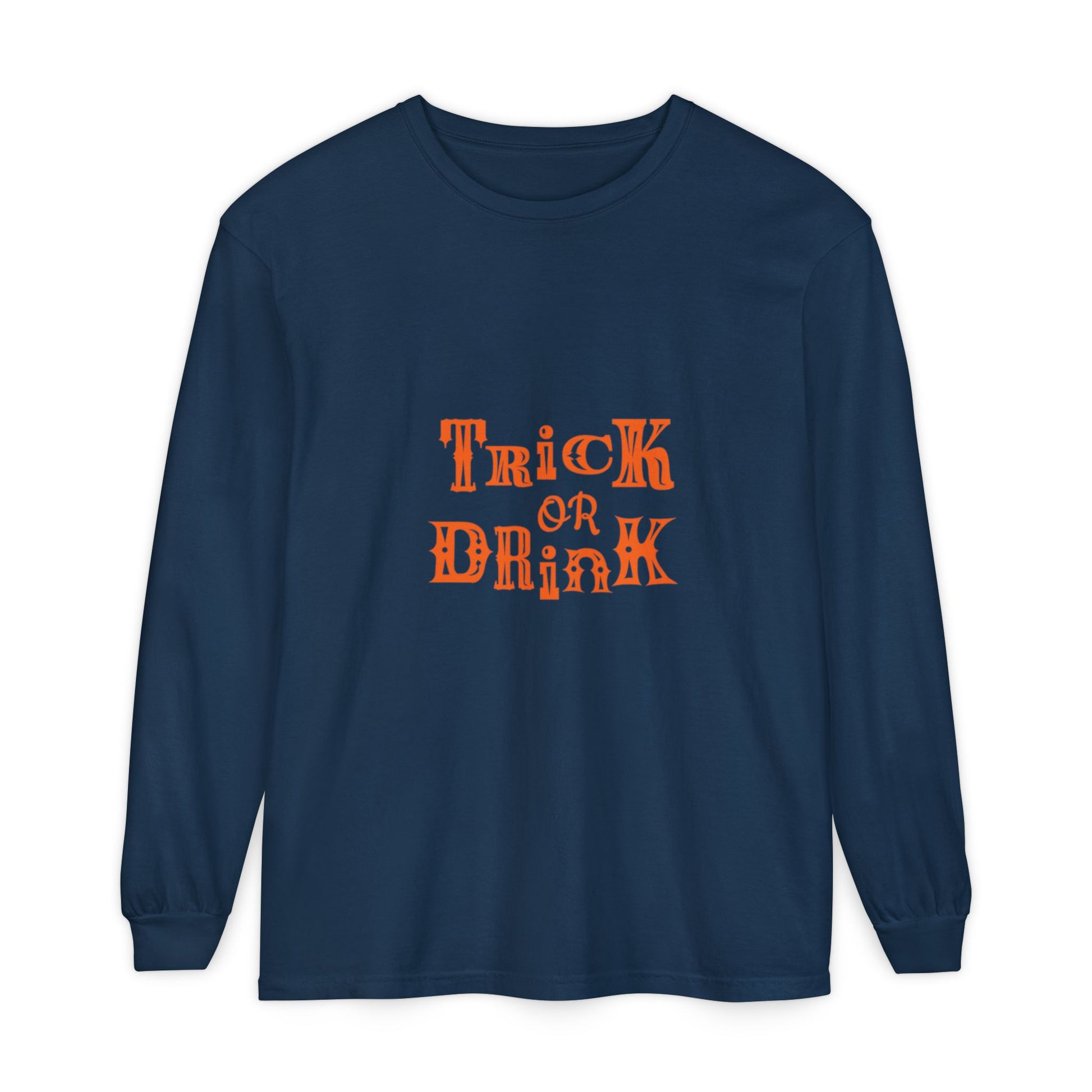 Raise your glass to spooky season with our Trick or Drink long sleeve shirt! Perfect for Halloween parties, pumpkin patch outings, or just sipping cider by the fire. Cozy, soft, and a little cheeky—this sweatshirt is the ultimate Halloween party essential.