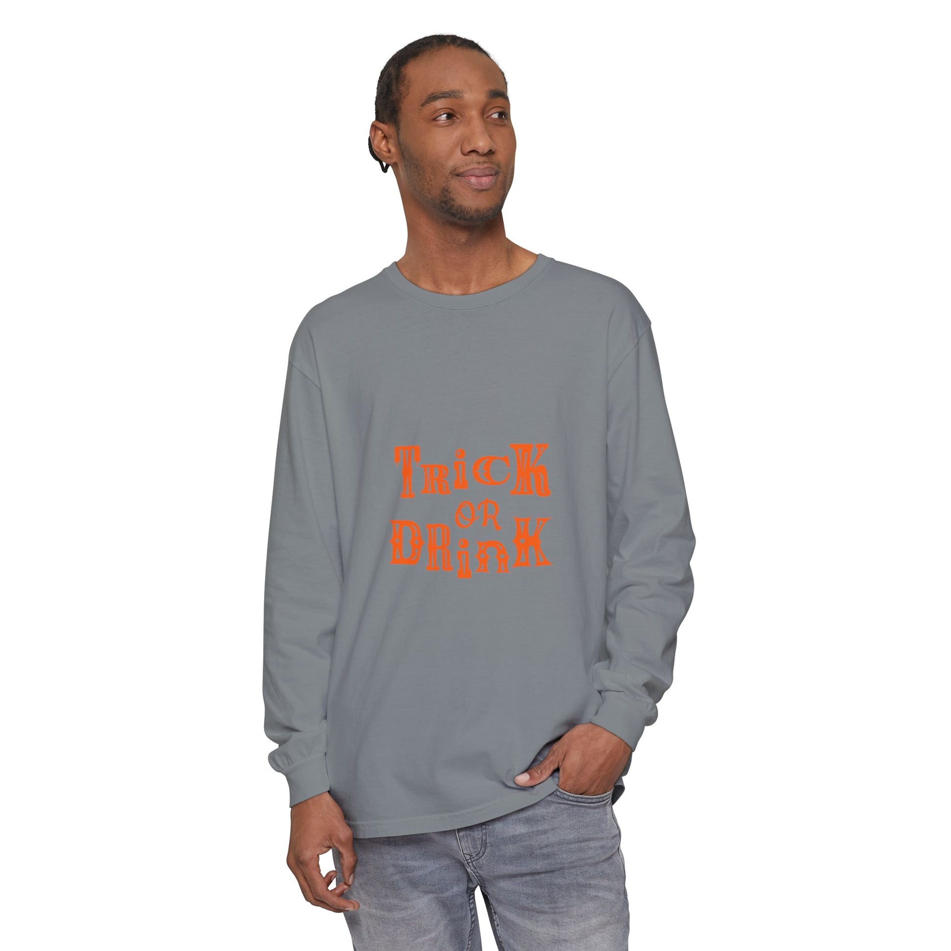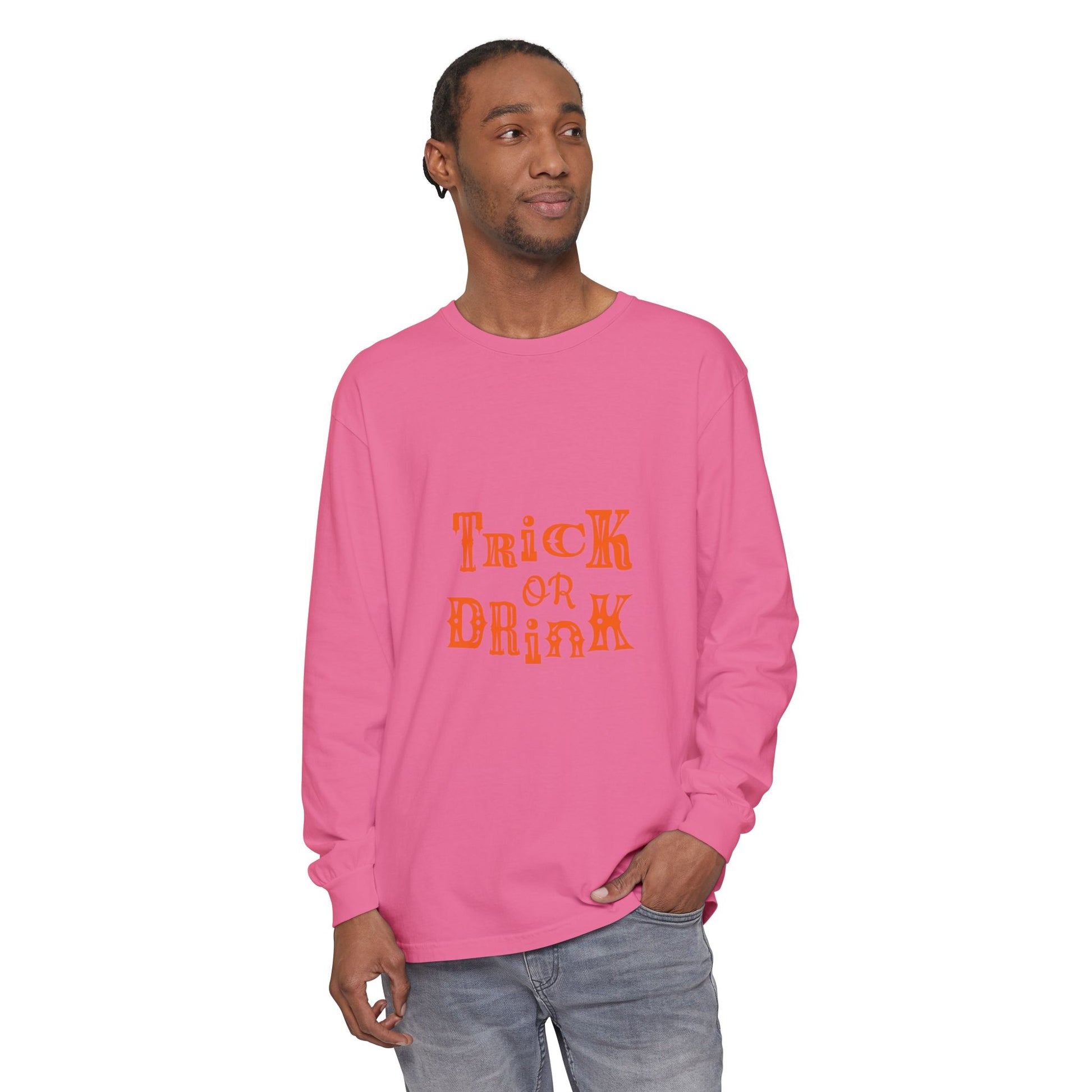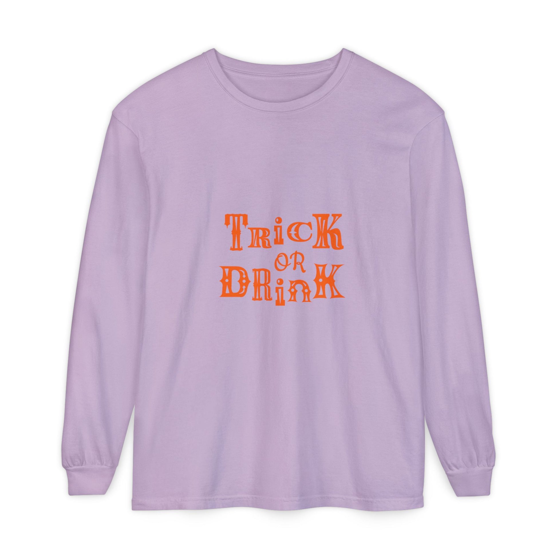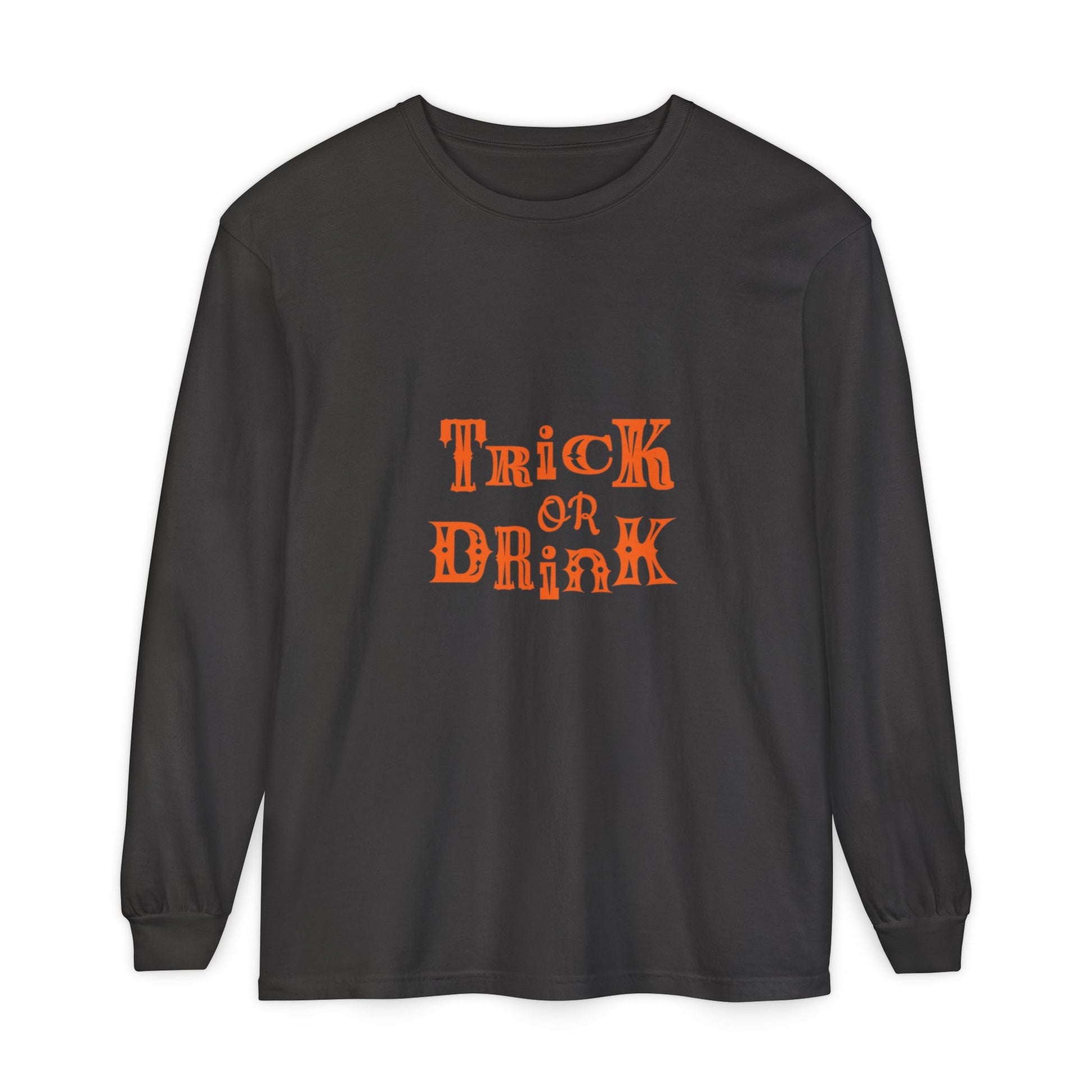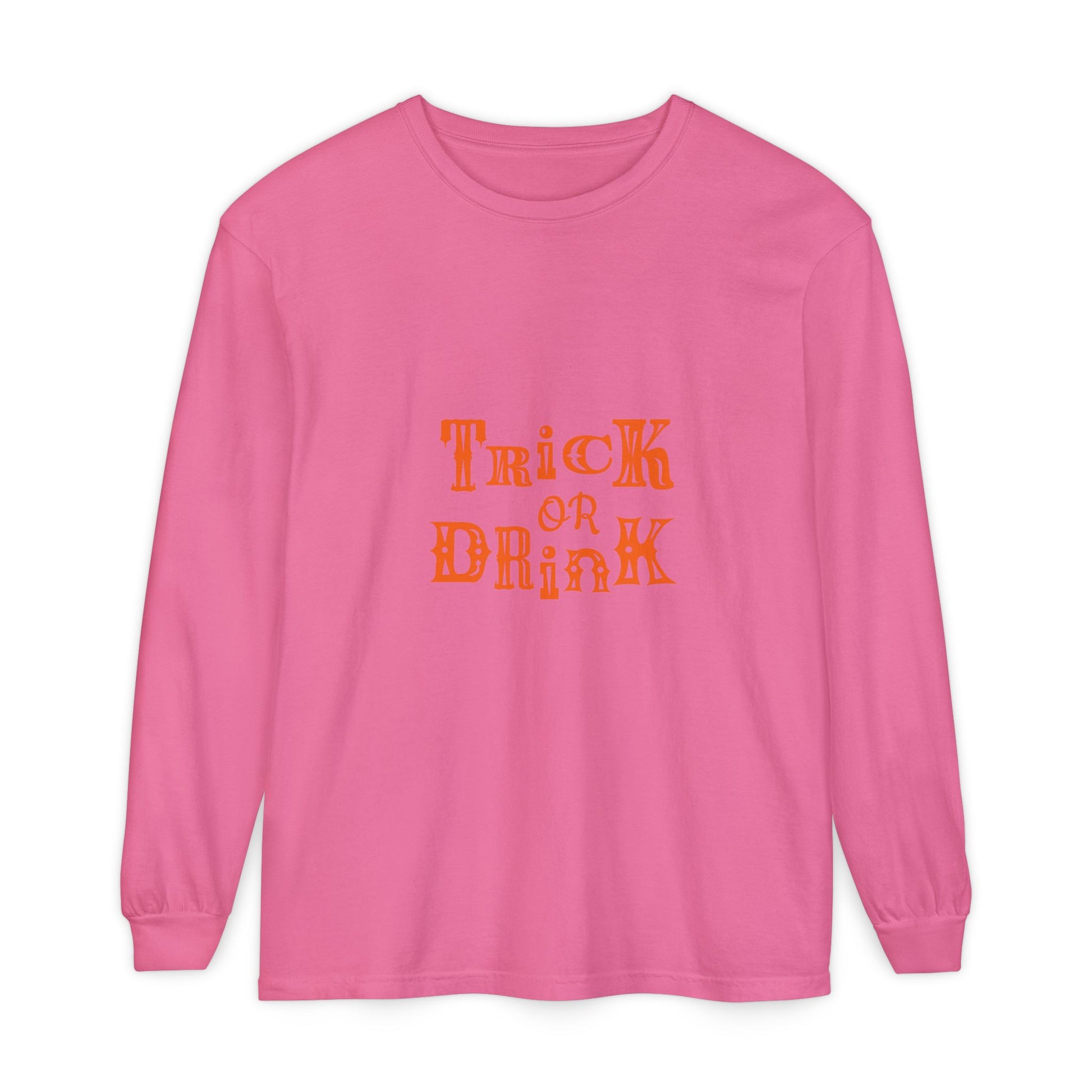 Raise your glass to spooky season with our Trick or Drink long sleeve shirt! Perfect for Halloween parties, pumpkin patch outings, or just sipping cider by the fire. Cozy, soft, and a little cheeky—this sweatshirt is the ultimate Halloween party essential.