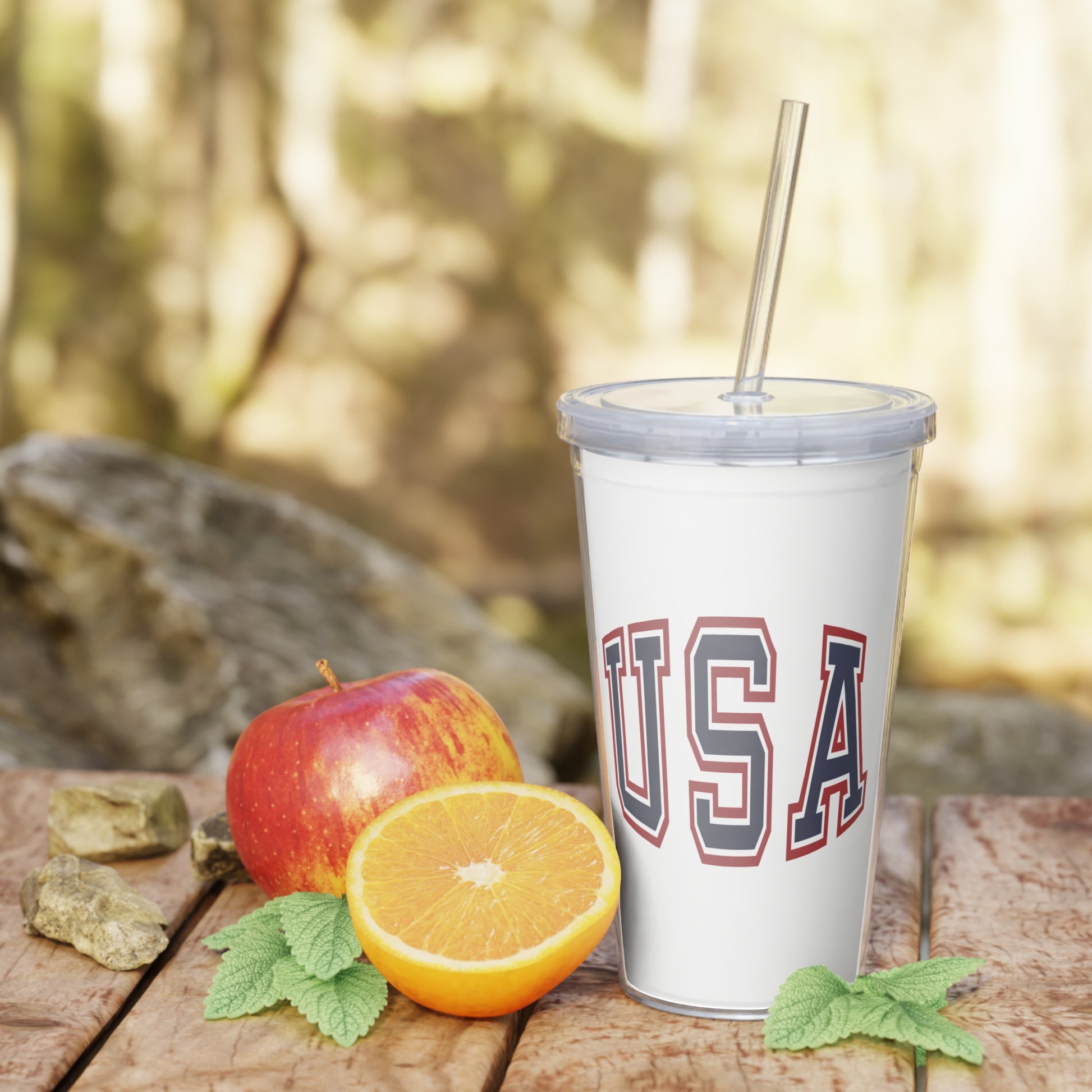 | Show off your star-spangled spirit with every sip. This bold USA tumbler celebrates everything you love about the red, white, and blue—freedom, firecrackers, and cold drinks on hot days. Built to hold your iced coffee, sweet tea, or something stronger, it’s a must-have for backyard BBQs, patriotic holidays, and unapologetically American moments. Comes with a straw so you're always ready to toast liberty. |