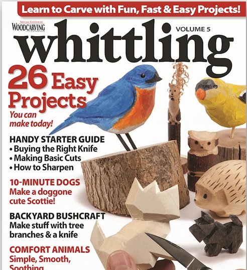 Learn to carve today with fun, fast and easy whittling projects! Whittling Volume 5 is packed with 26 projects that you can make in only minutes, using just a pocket knife. Beginners will get started right away with a 10-minute dog, a fishing lure, and a slip-bark whistle. Quick and easy whittling projects encourage you to relax and unwind with “comfort critters” like a hedgehog, a baby elephant, or a one-twig owl. Then move on to terrific weekend projects, including keepsake ornaments, expressive caricatures, and a fresh take on the traditional ball-in-a-cage. This issue includes a handy whittler’s starter guide that covers all the fundamentals you need to know, from knife selection and sharpening to safety and basic knife cuts.