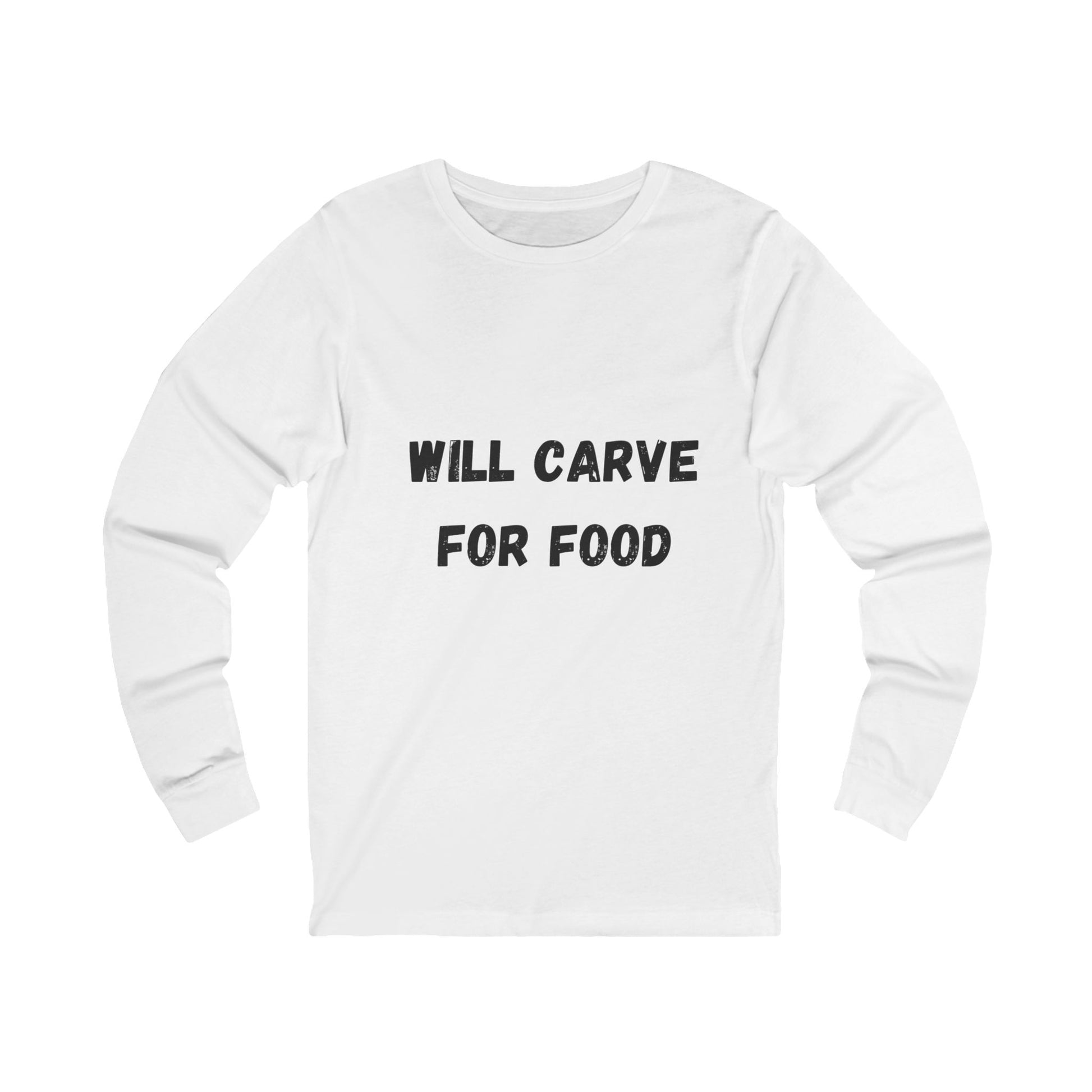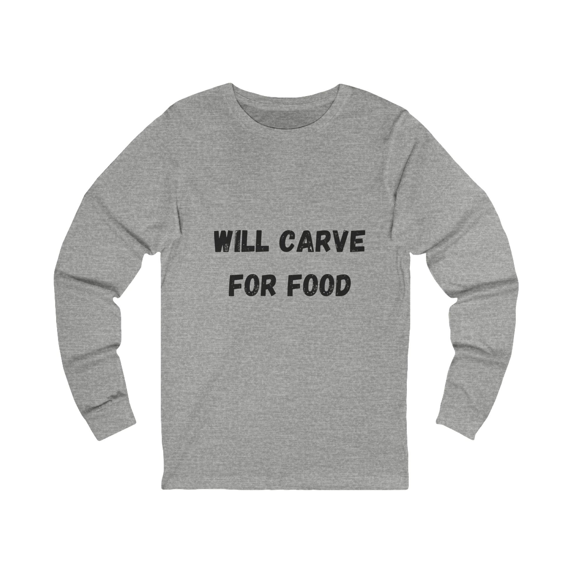 Don't underestimate my hunger. This long-sleeve shirt declares my unwavering commitment to acquiring food, even if it means wielding a carving knife. I'm not afraid of a little hard work for a good meal. Bring on the challenge!